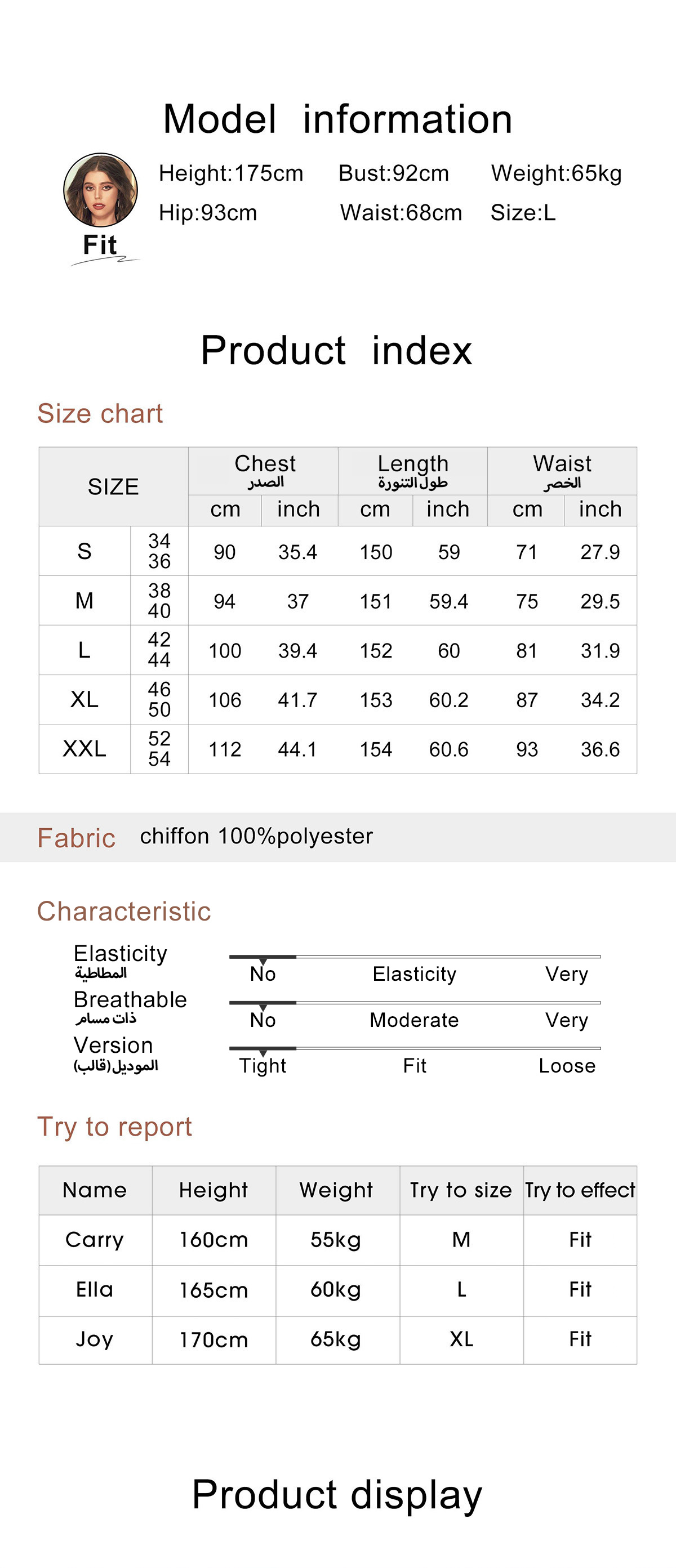| Product Size | Bust/Chest(cm) | Skirt length(cm) | Waist(cm) |