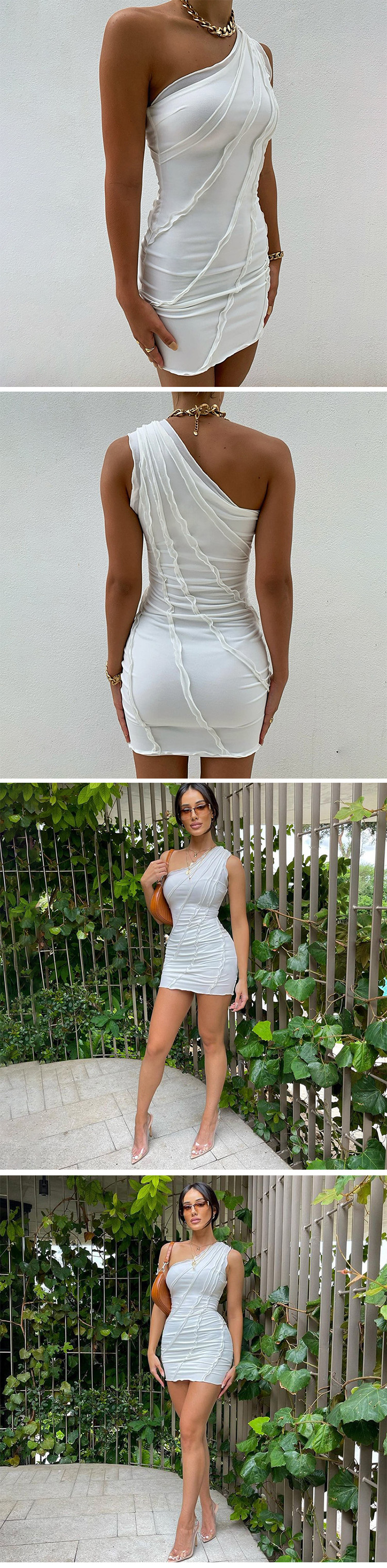 Features:One shoulder, Sleeveless bodycon tank short dress, Simple classic, Basic casaul, Tight slim fitted like a glove