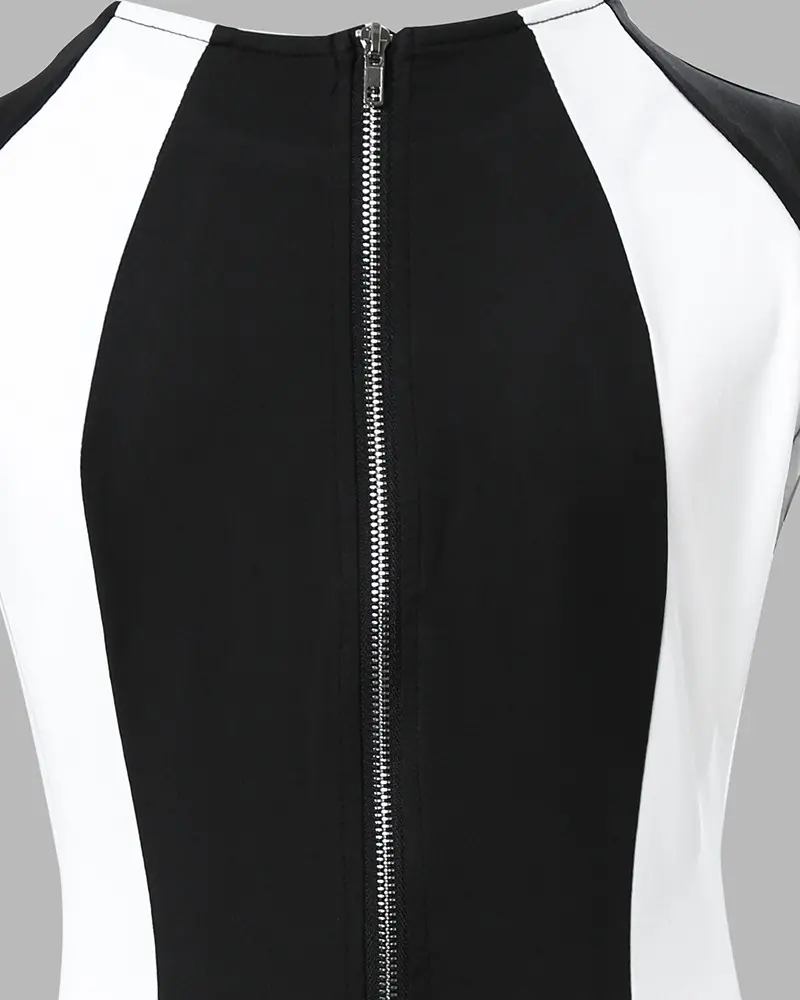 Elegant Women's Dresses 2022 Summer Fashion Colorblock Round Neck Sleeveless Casual Bodycon Mini Daily Dress