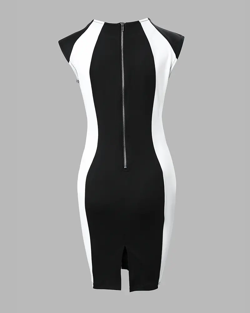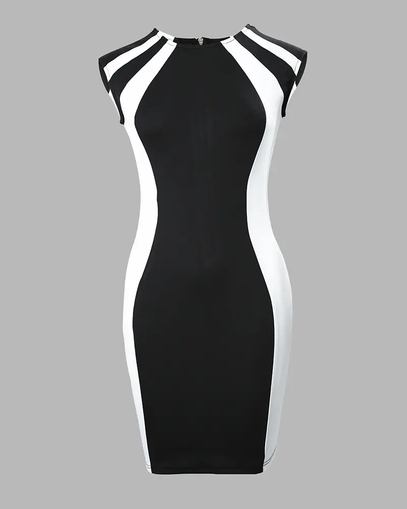 Elegant Women's Dresses 2022 Summer Fashion Colorblock Round Neck Sleeveless Casual Bodycon Mini Daily Dress