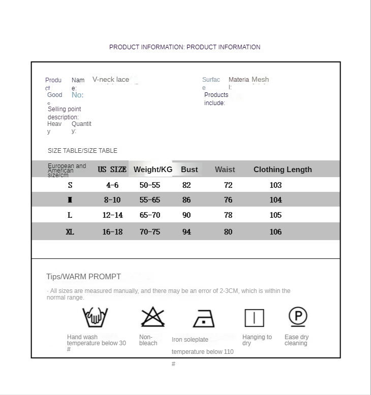 | Product Size | Bust/Chest(cm) | Skirt length(cm) |