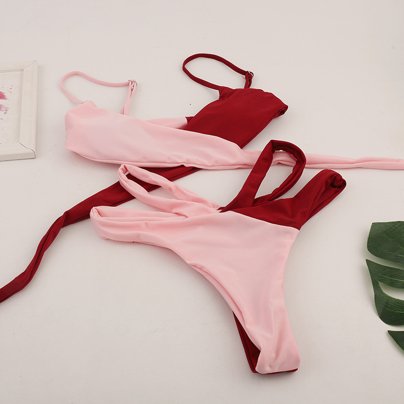 European and American tie triangle split bikini