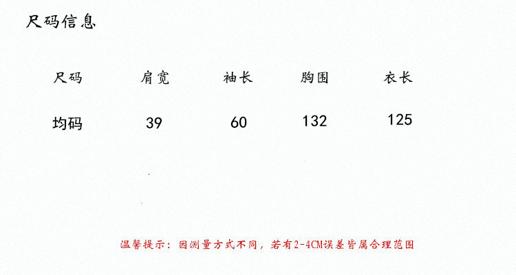 | One size | 39cm | 132cm | 60cm | 125cm |