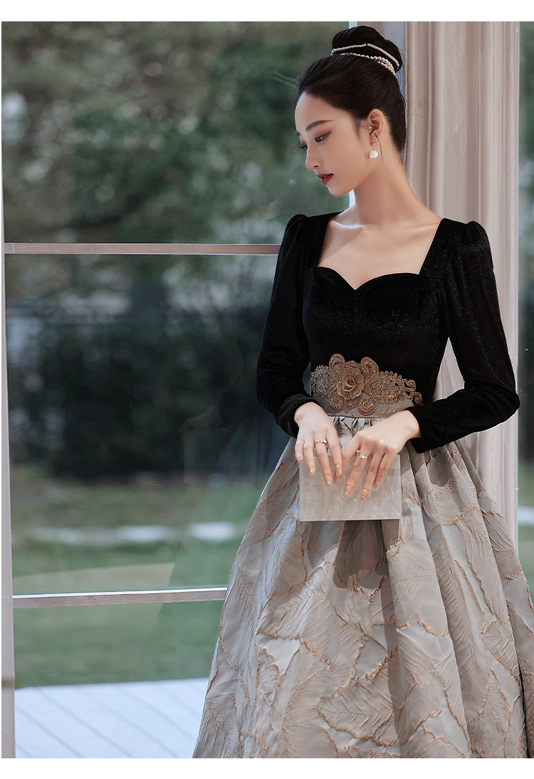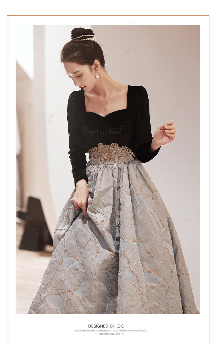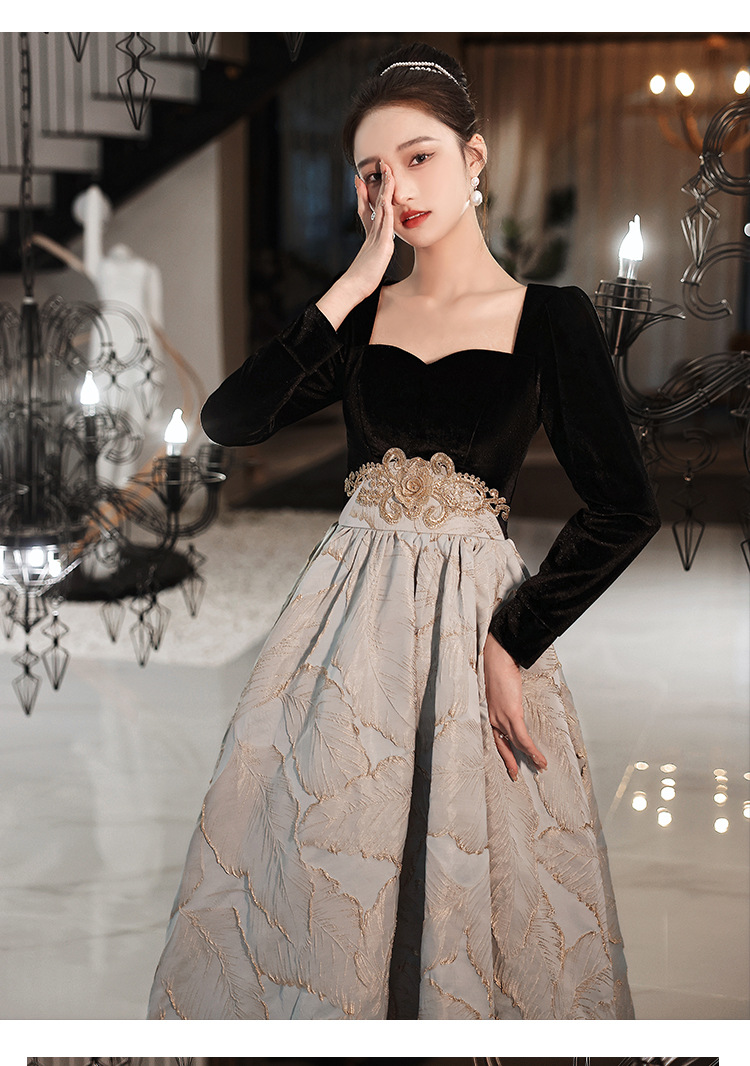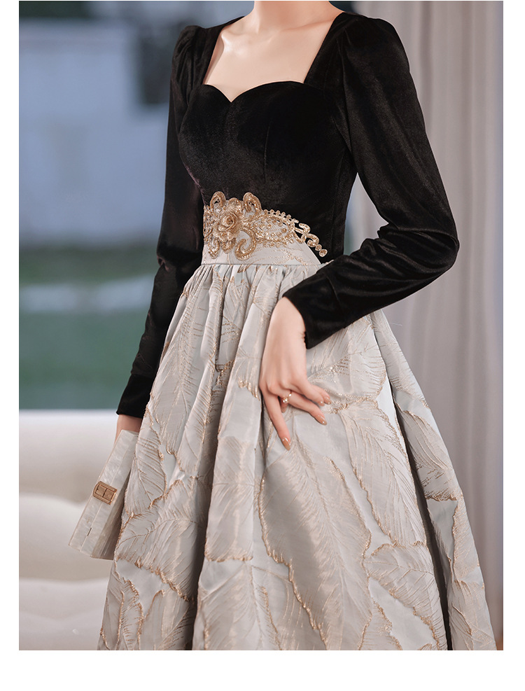 Evening dress women's 2022 autumn and winter new temperament annual meeting host birthday velvet long-sleeved dress