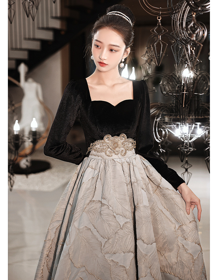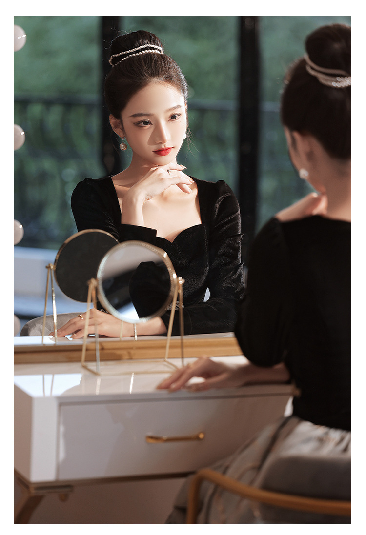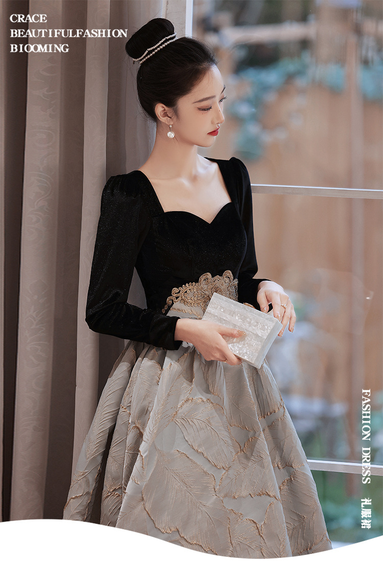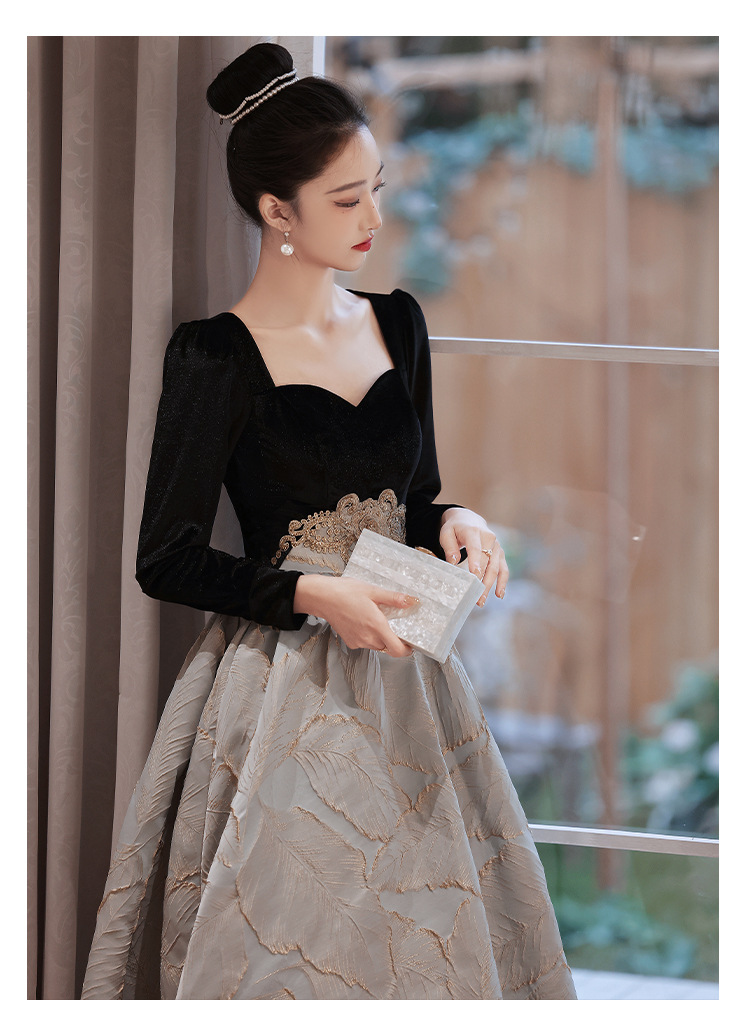 Evening dress women's 2022 autumn and winter new temperament annual meeting host birthday velvet long-sleeved dress