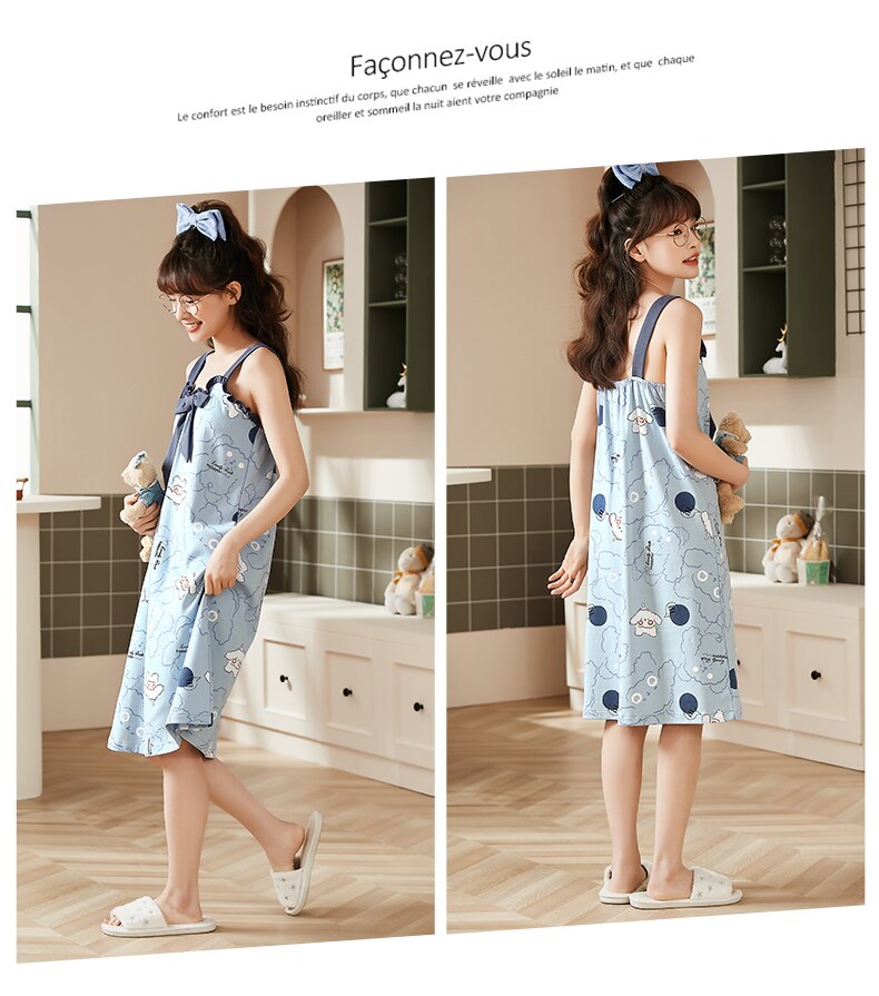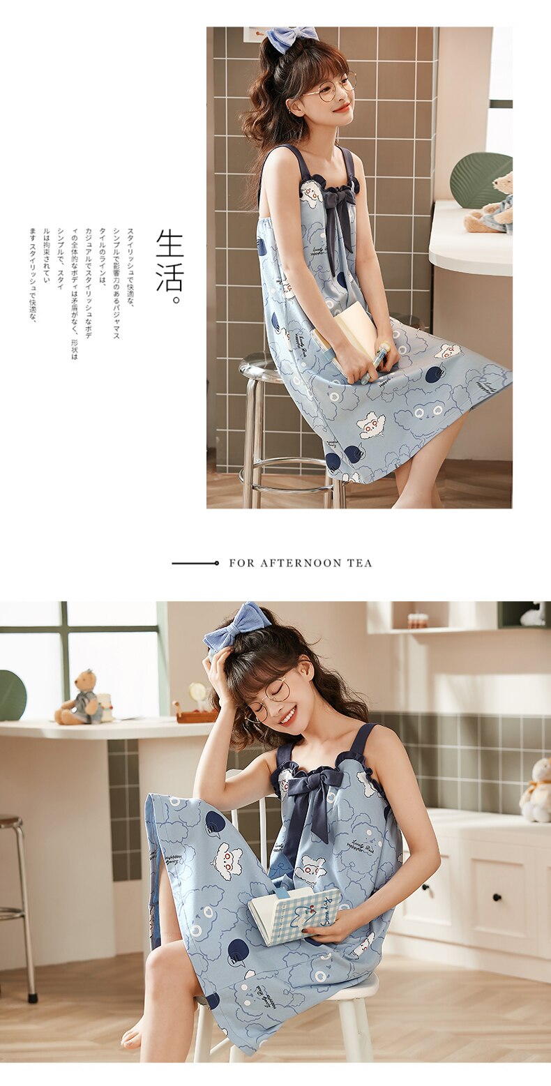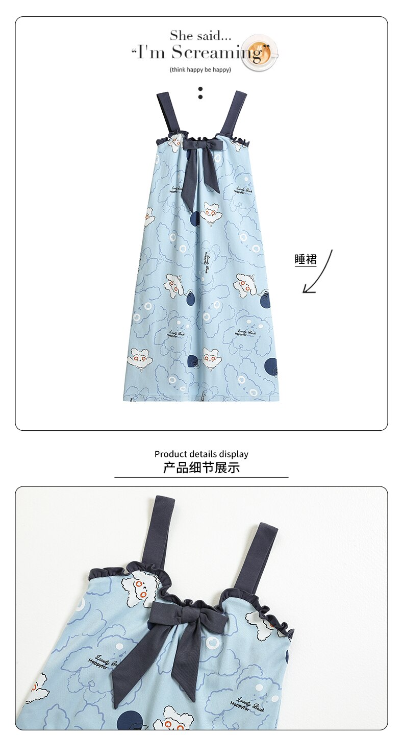 Fashion Chic Women Spaghetti Strap Cotton Nightgowns M-3XL Summer Camisoles Nightdress for Girls Kawaii Bow Decor Cute Dressing