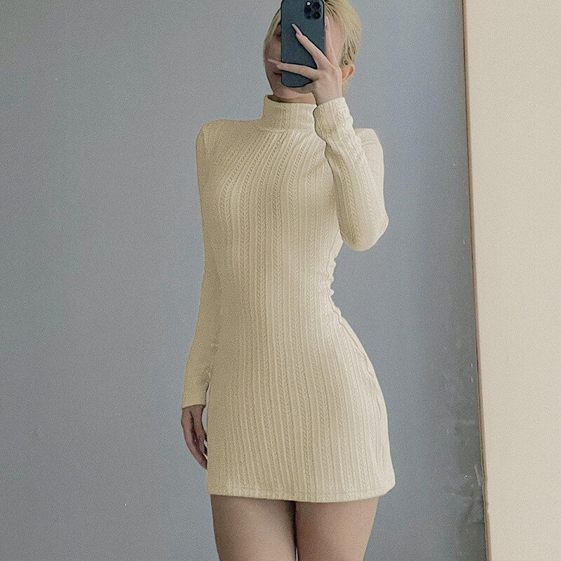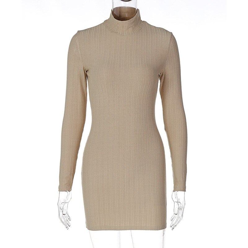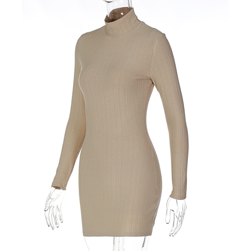 Fashion knit long sleeves high neck sexy Bodycon mini dress fall/winter women elegant clothing streetwear party Y2K green