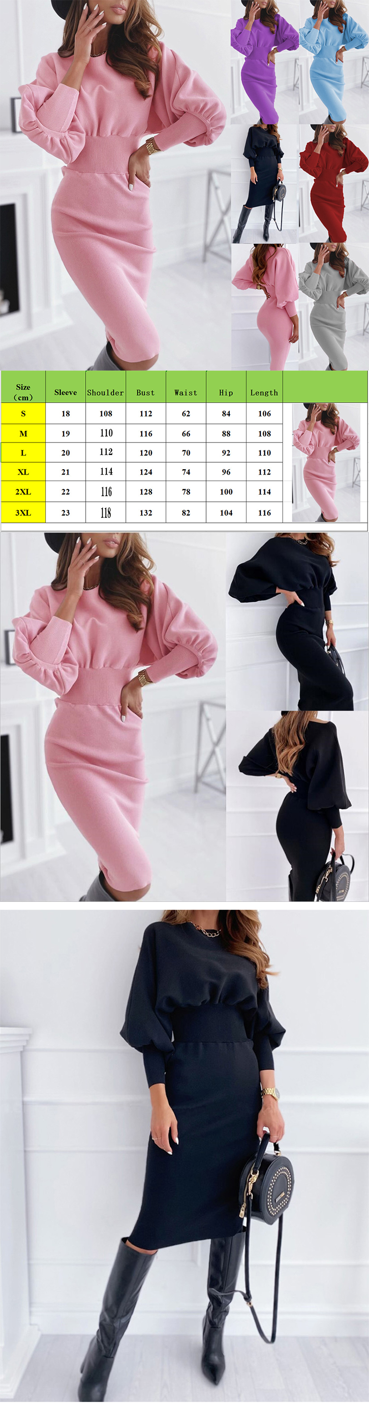 Features: This women bodycon dress features high-quality material, Solid color, waist waist, lantern sleeves, round neck, knee length. The pencil dress goes great with any body shape, comes in a wide range of sizes and look just great on you whenever you decide to wear it.