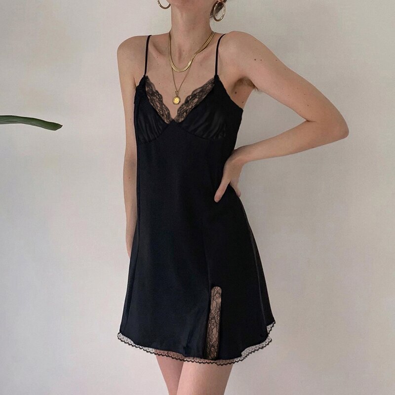 Fashion Women Sleeveless Nightwear Lace Dress Sleepwear Deep V-Neck Mesh Wrapped Sleeping Backless Mini Dress Sexy Nightgowns