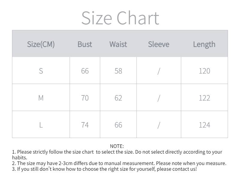 | Product Size | Shoulder(cm) | Bust/Chest(cm) | Sleeve(cm) | Skirt length(cm) | Waist(cm) |