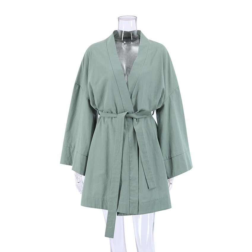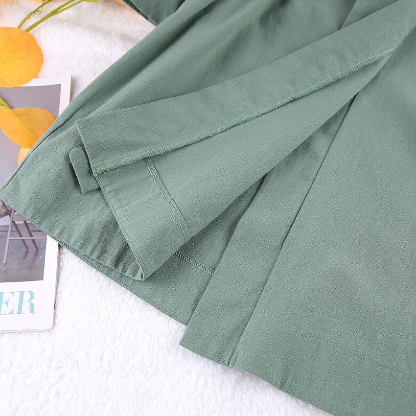 NHKDSASA Green Loose Robes For Women Sleepwear Cotton Long Sleeve Women's Dressing Gown Sexy Mini Dress 2022 Spring Bathrobe Female