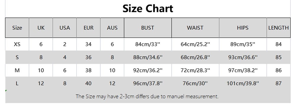 | Product Size | Bust/Chest(cm) | Skirt length(cm) | Waist(cm) |