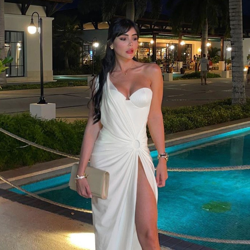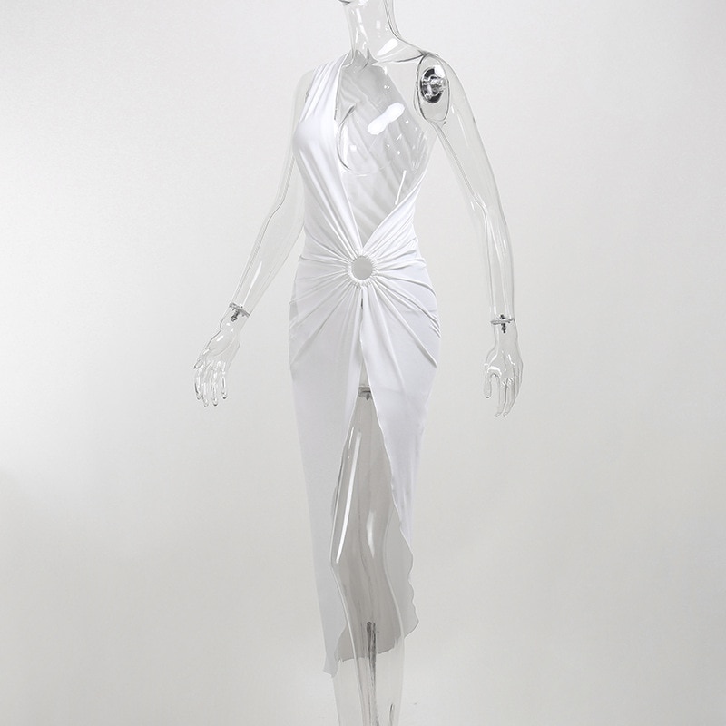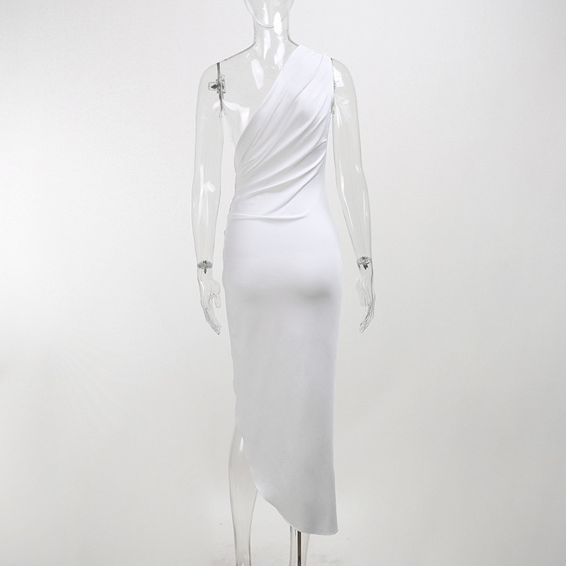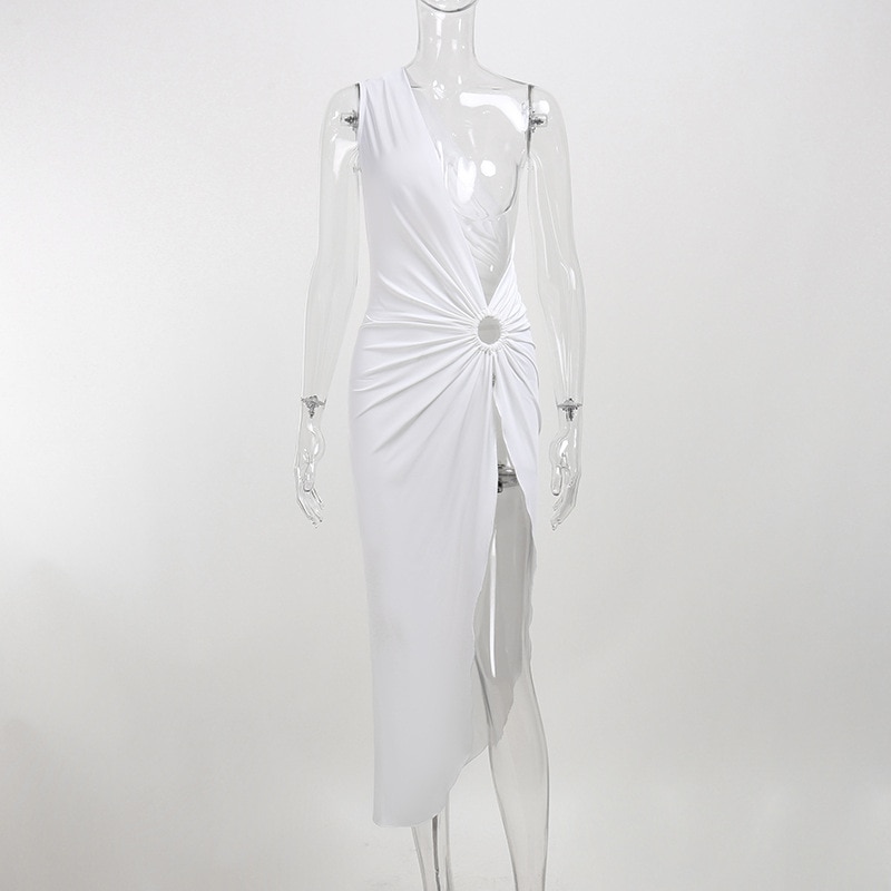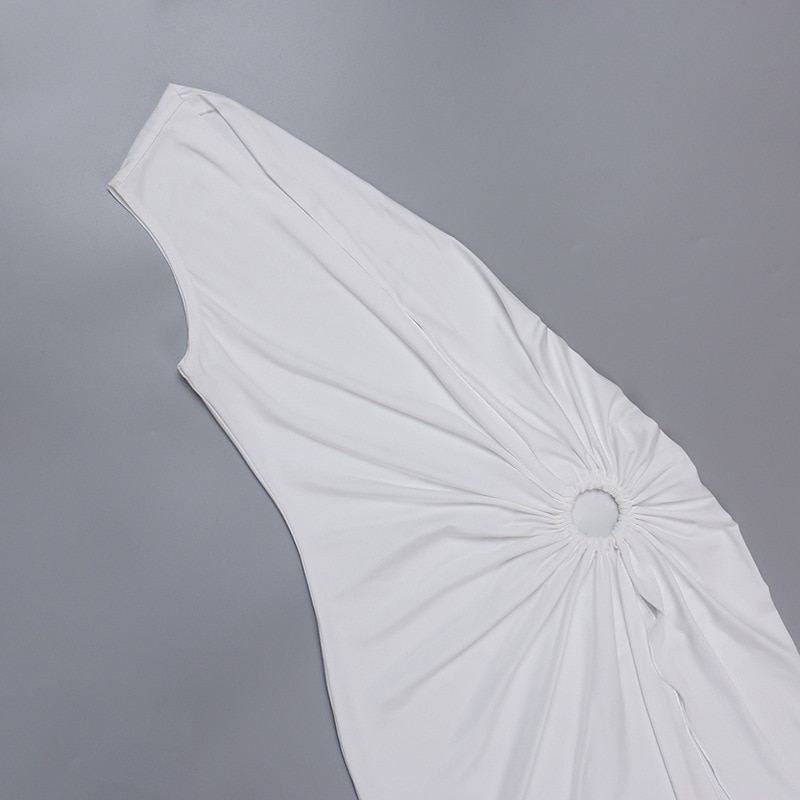 Hollow Out Women Midi Beach Dress White One Shoulder Sleeveless 2022 Summer Sexy Dresses Bodycon Party Nightclub