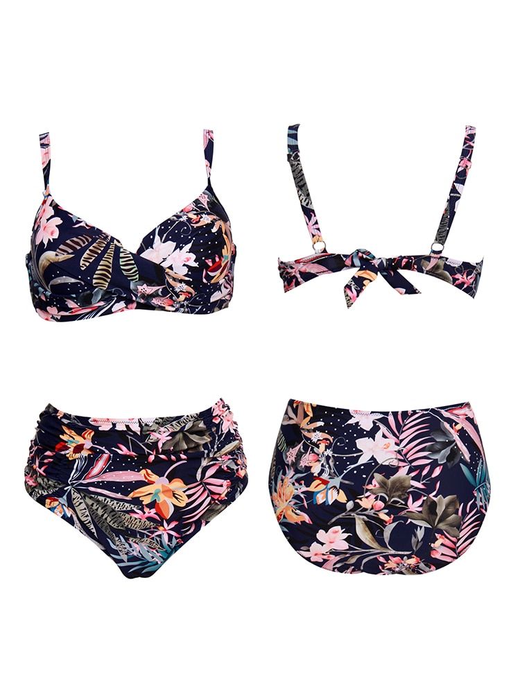 Design:A bikini top with underwire push up your bust, while adjustable straps lends more support.A high waist swim bottom with wrinkle detailed, while the moderate leg cut offer more coverage.