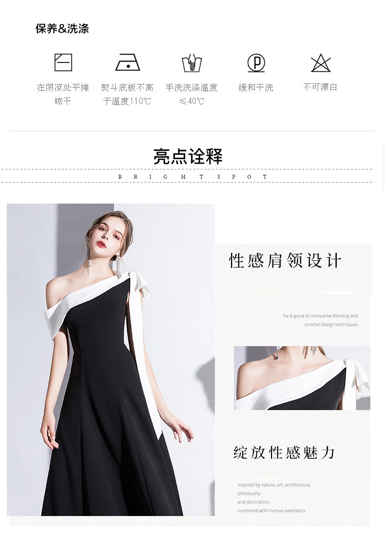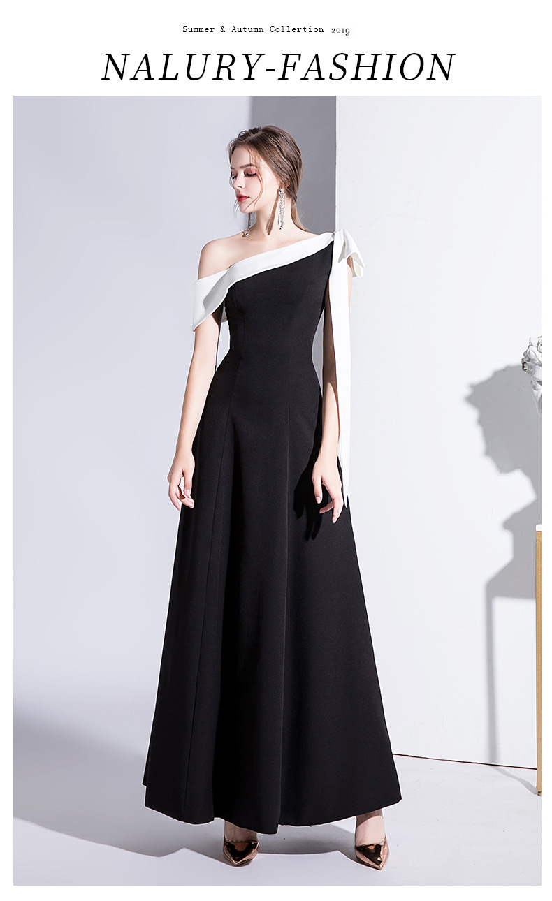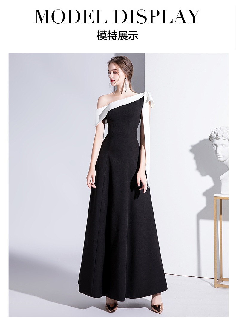 Hot sale black evening dress female 2023 new one-shoulder celebrity temperament banquet dress slim and long daily dress