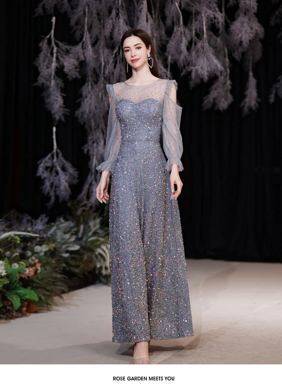 Hot sale new French toast dress bride long-sleeved dinner annual catwalk catwalk piano performance stage performance host wedding dress
