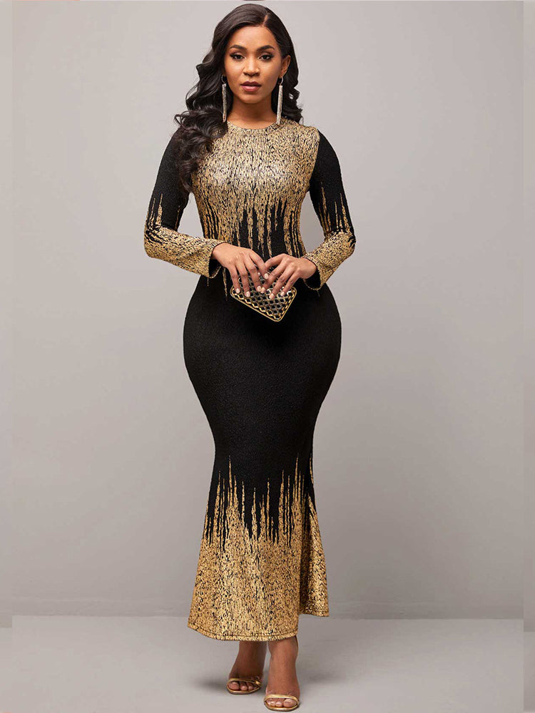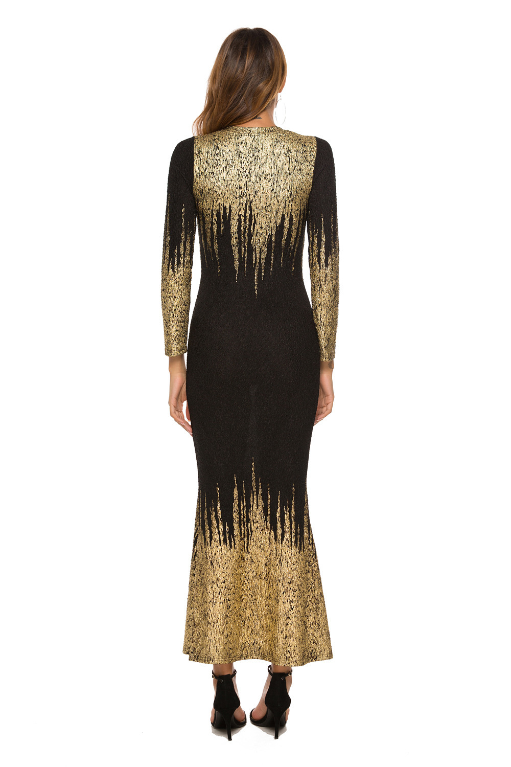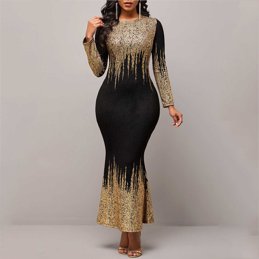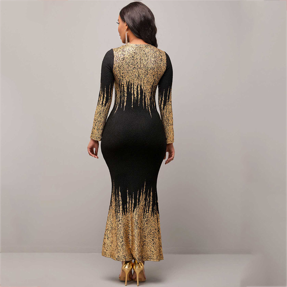 2022 European and American sequins mid-length fashion v-neck long-sleeved mid-waist pencil skirt dress sequin sexy tunic hip evening dress