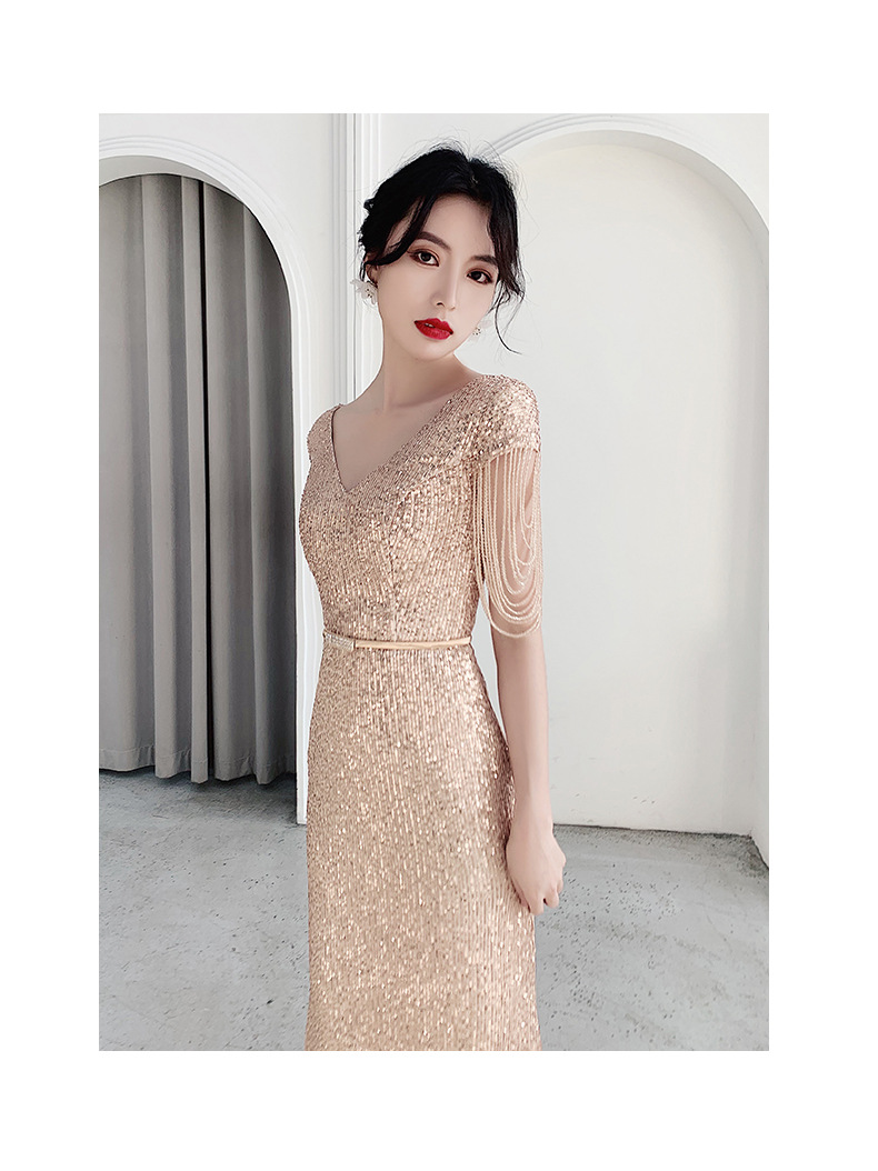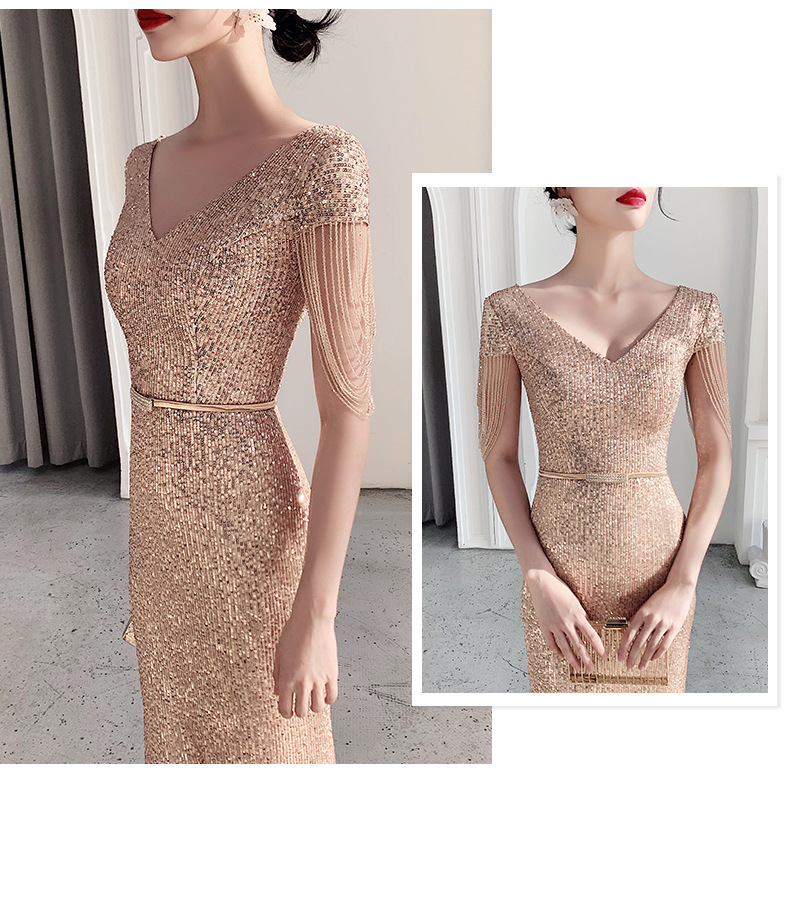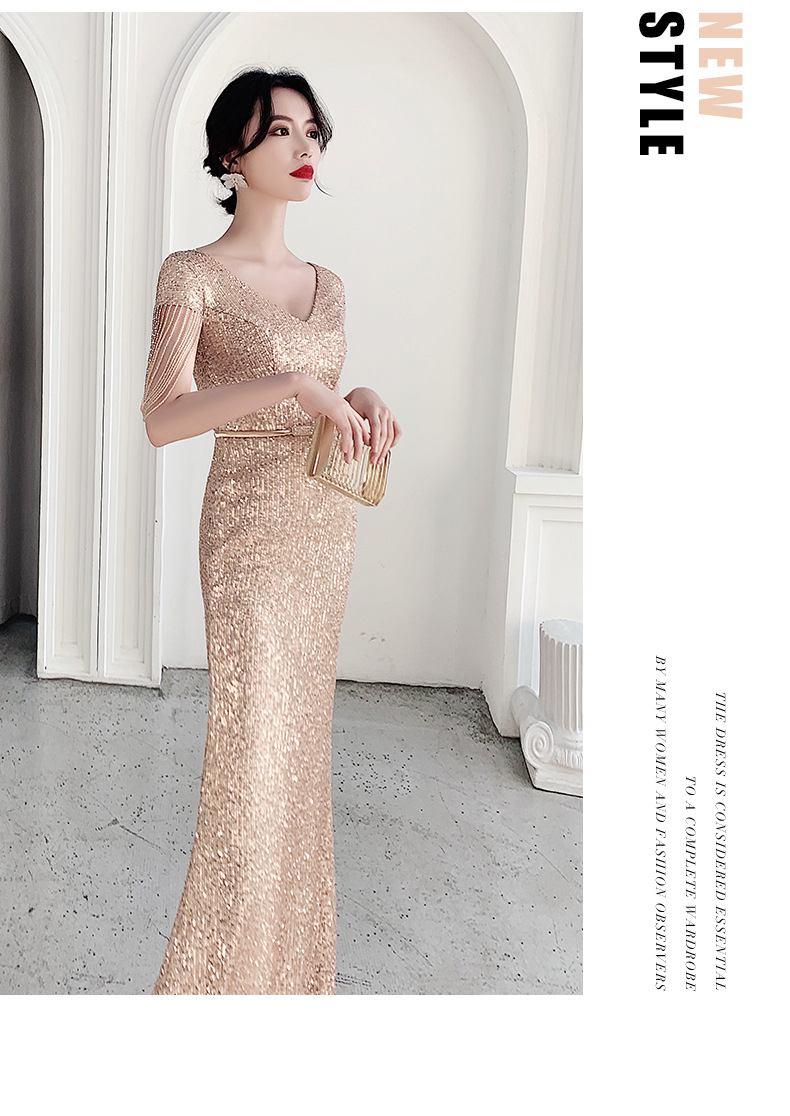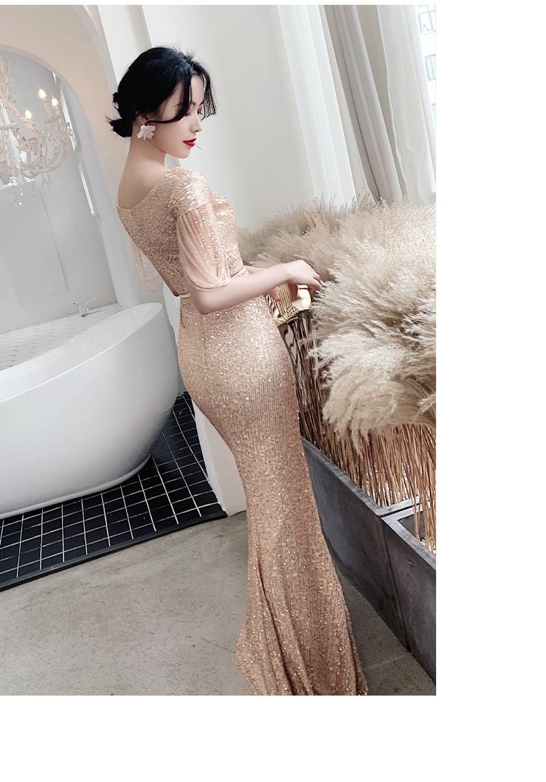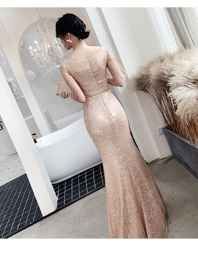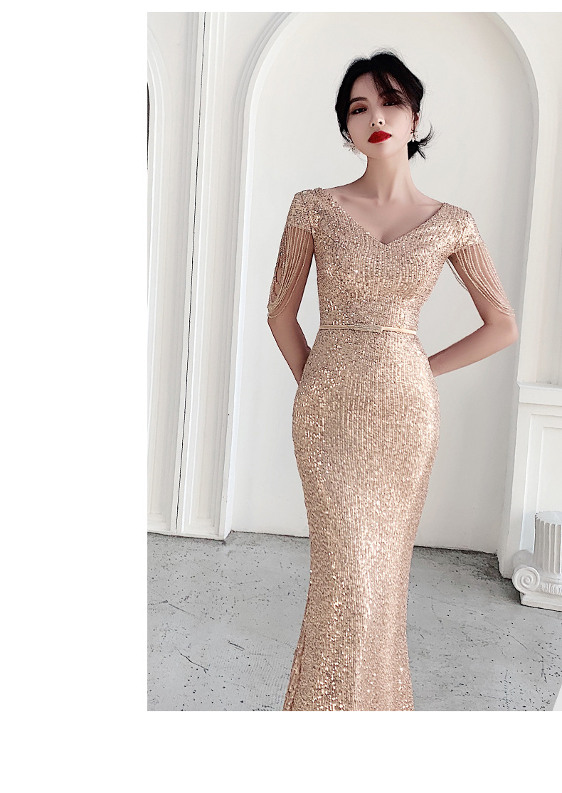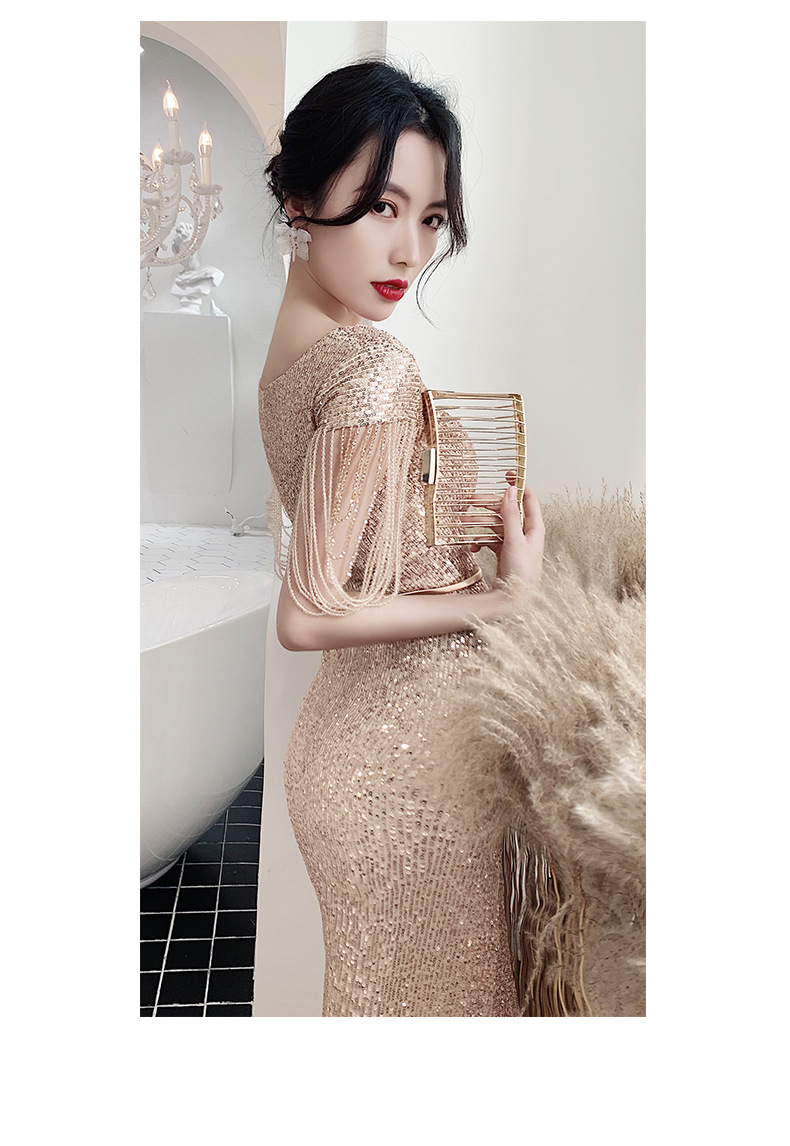 Hot selling new evening dress women 2021 new champagne golden annual meeting banquet aura queen temperament fishtail dress sexy