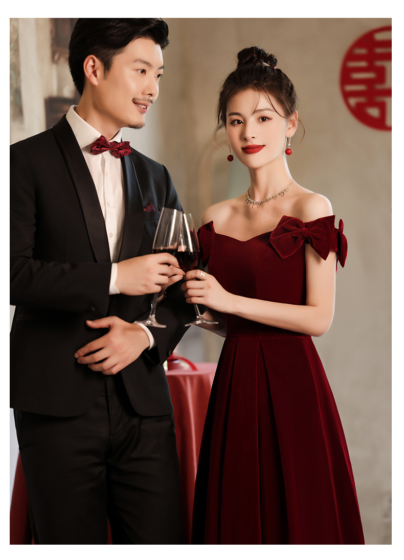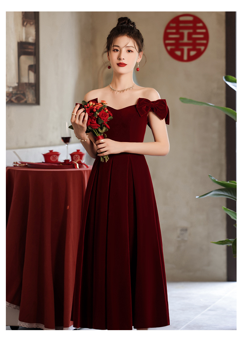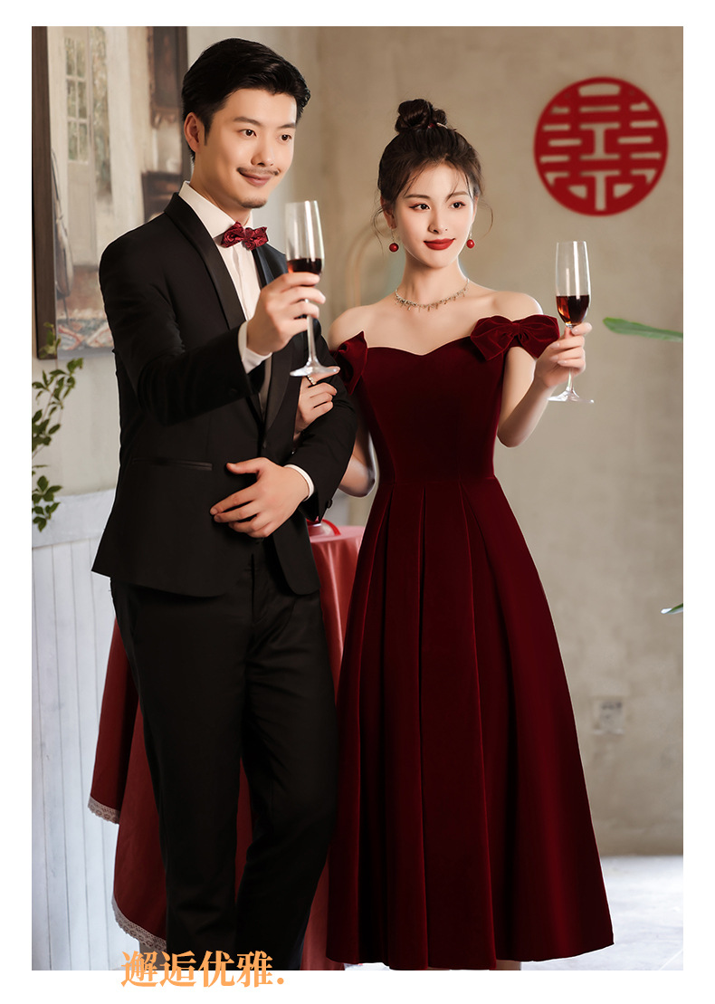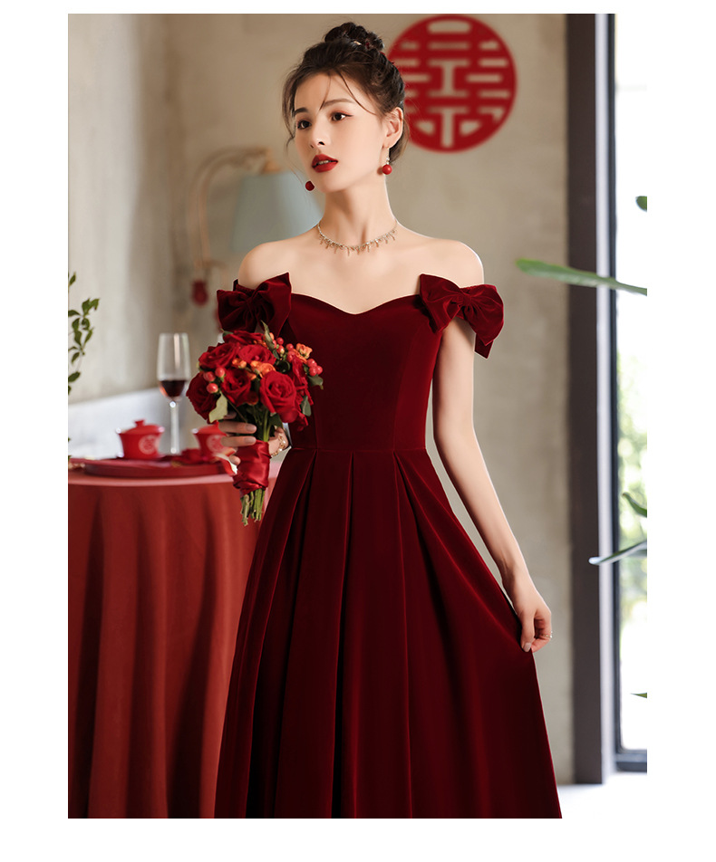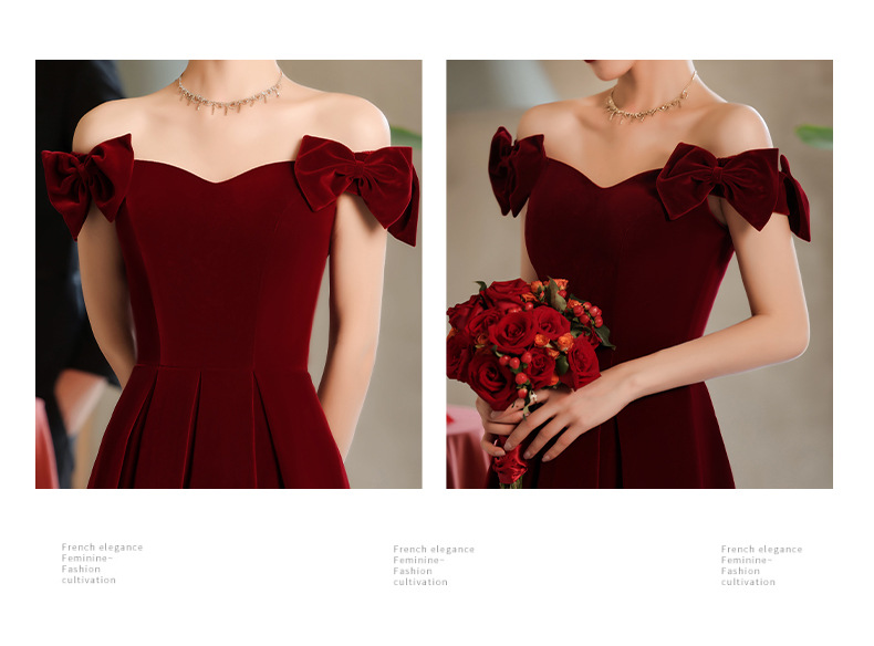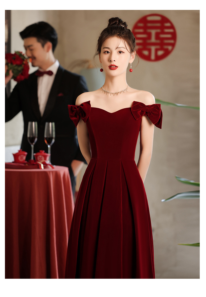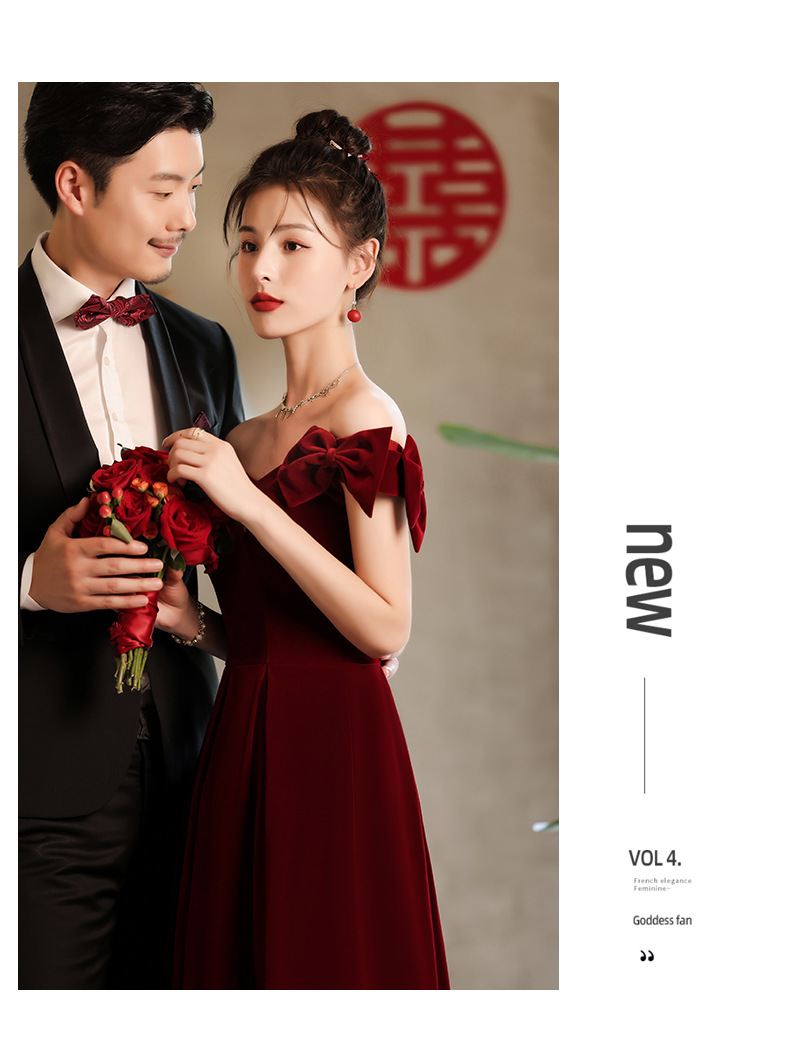 Hot selling new one-shoulder red wedding toast dress bride 2022 new engagement dress female small back door autumn and winter