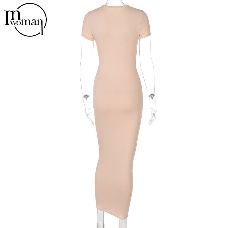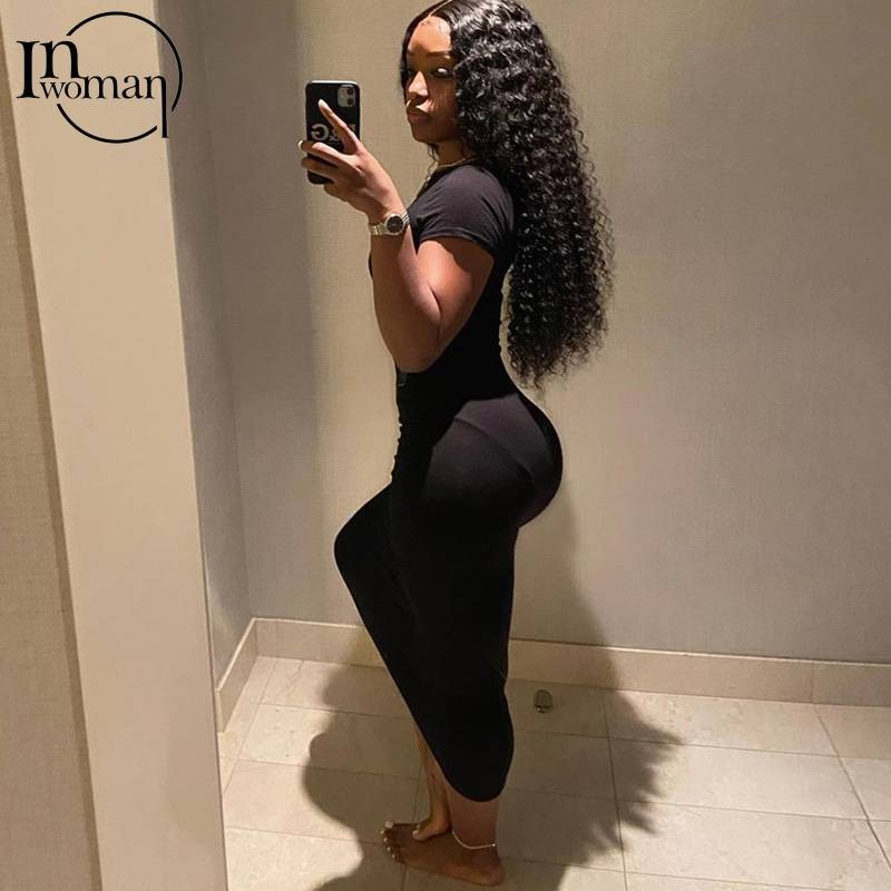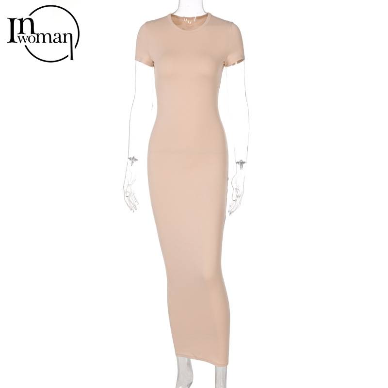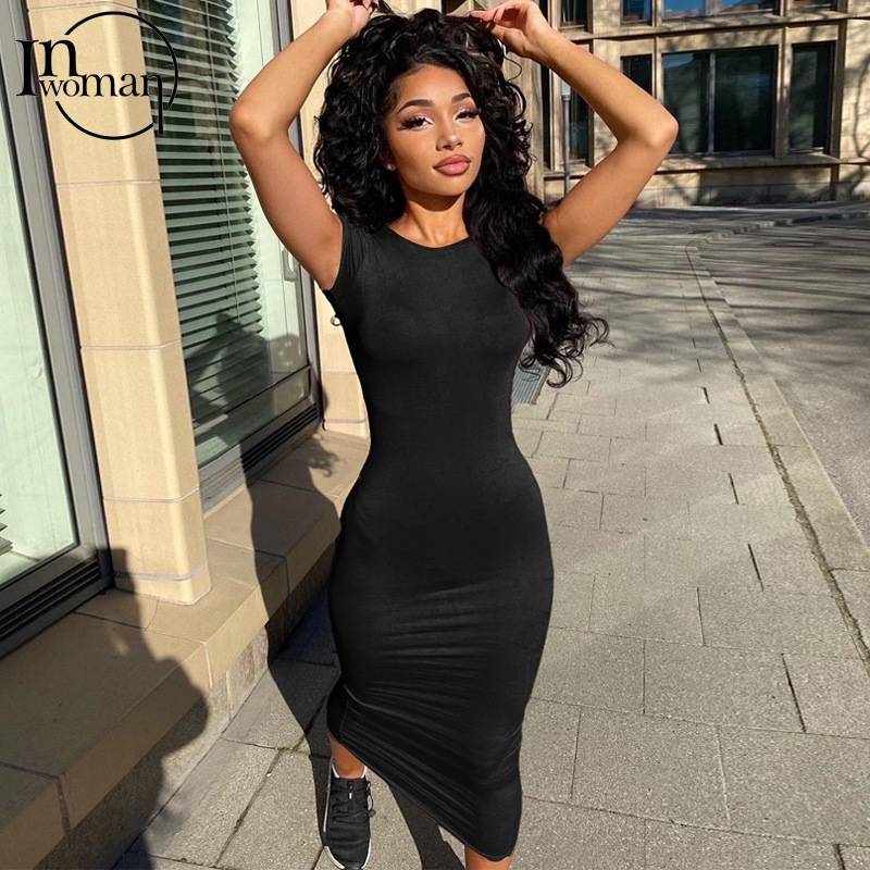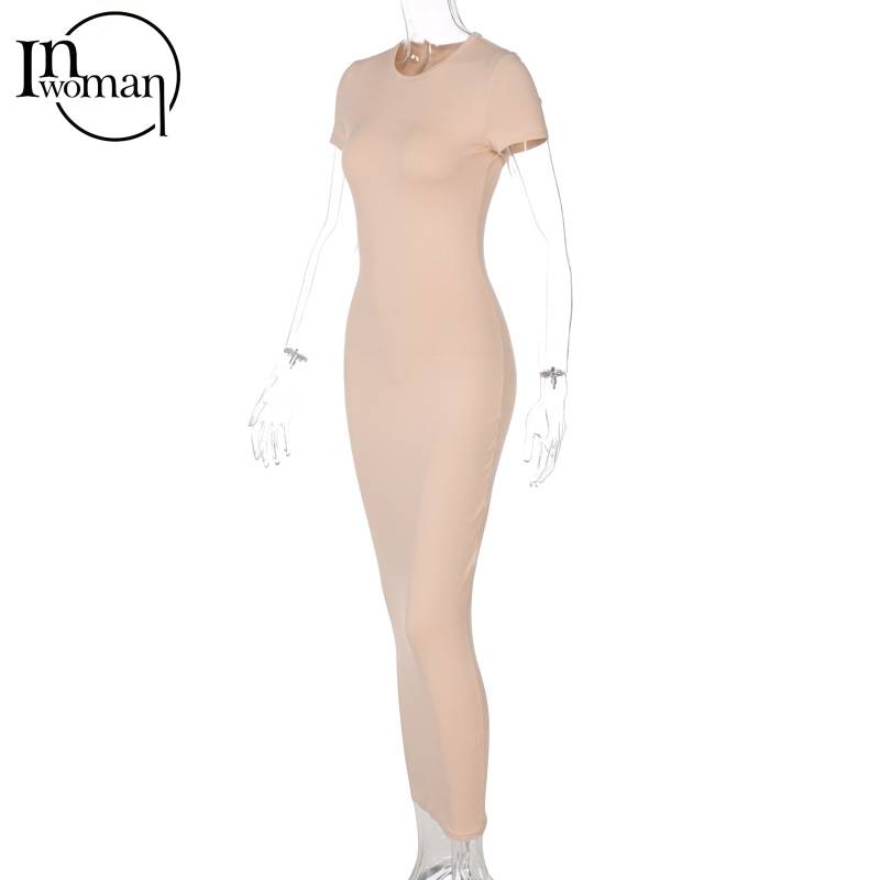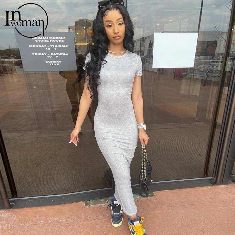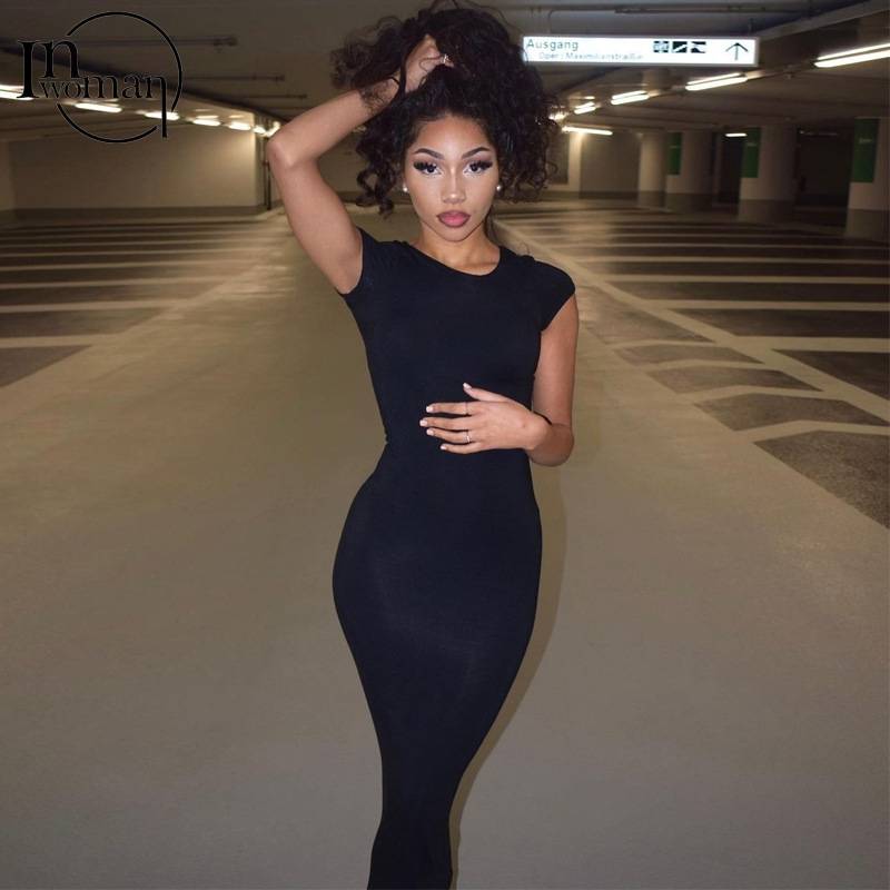Inwoman Summer Black White Sexy Short Sleeves Knitted Clubwear Bodycon Booty Maxi Dress Women Female Party Sheath Dresses 2021