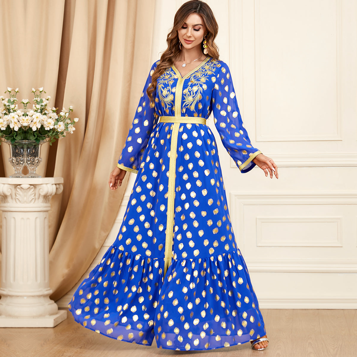 Jalabiya Temperament Patchwork Hot stamping Comfortable Dress
