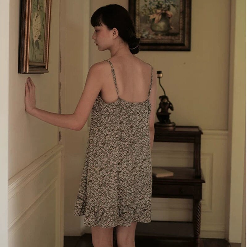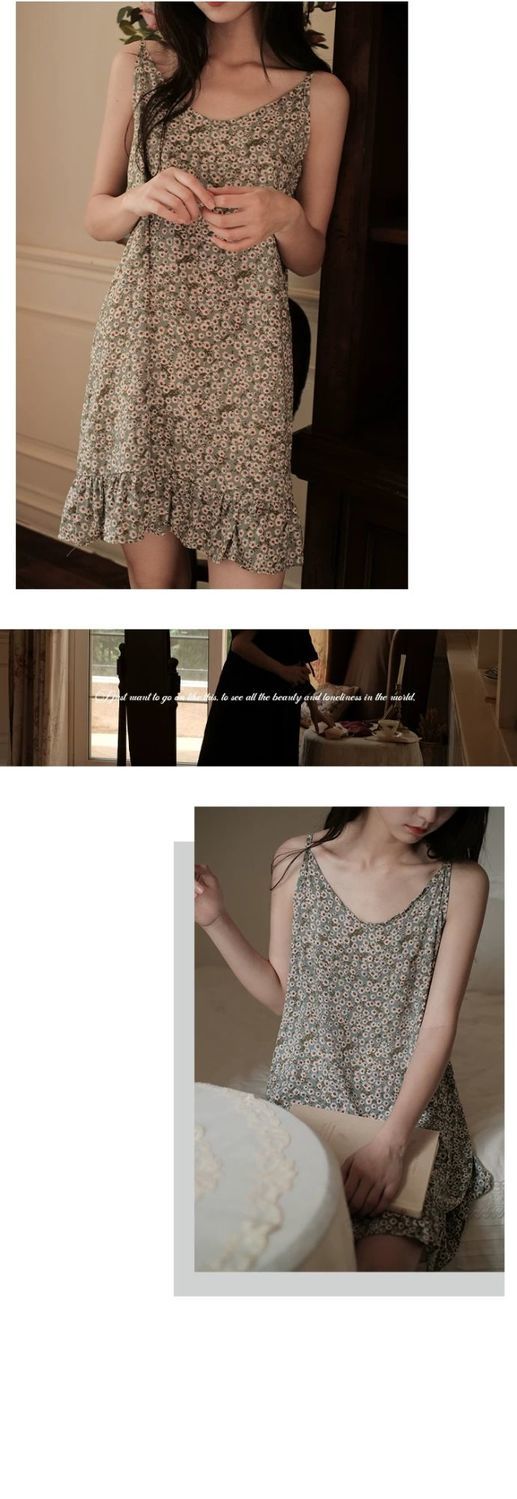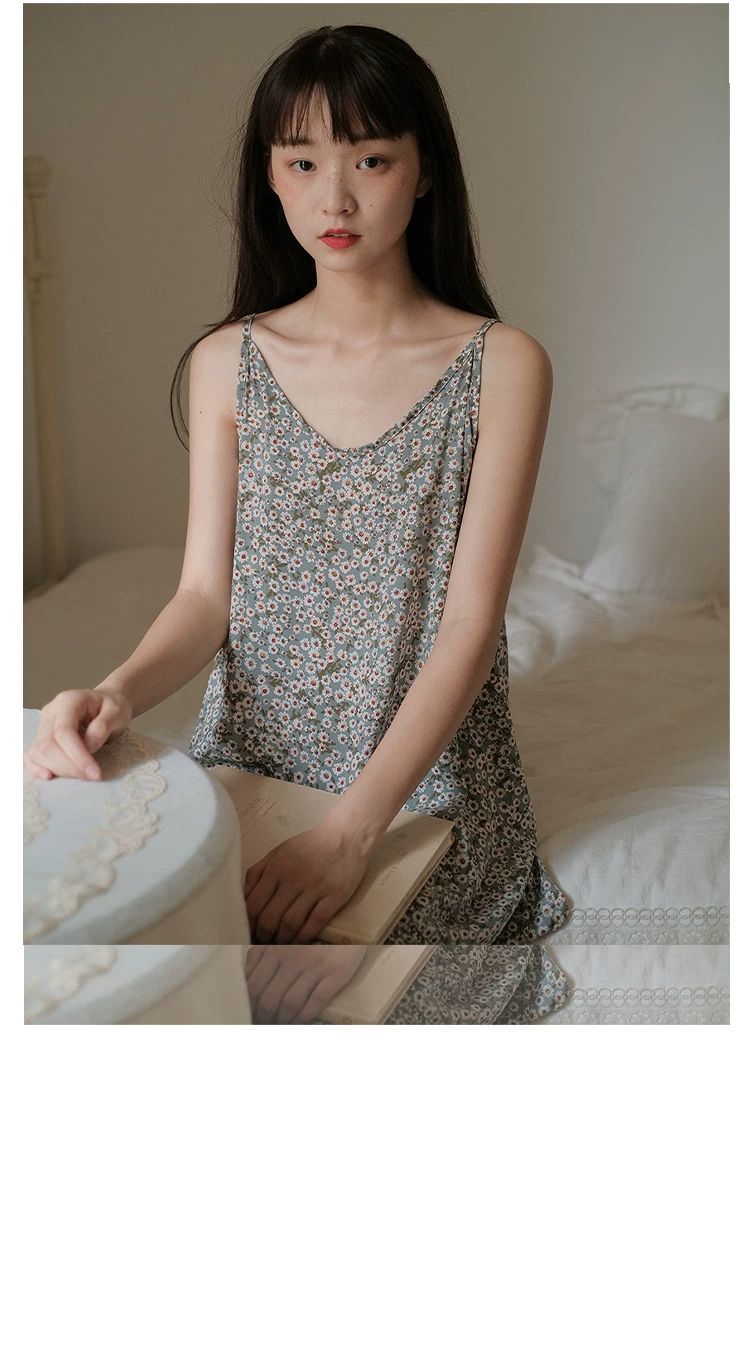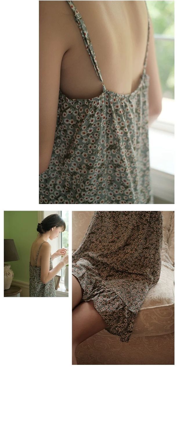 Korean Style Night Dress Women Sleepwear Girls Summer 2021 Nightgown Ladies Cute Sweet Floral Print Skirt Homewear Night Sling
