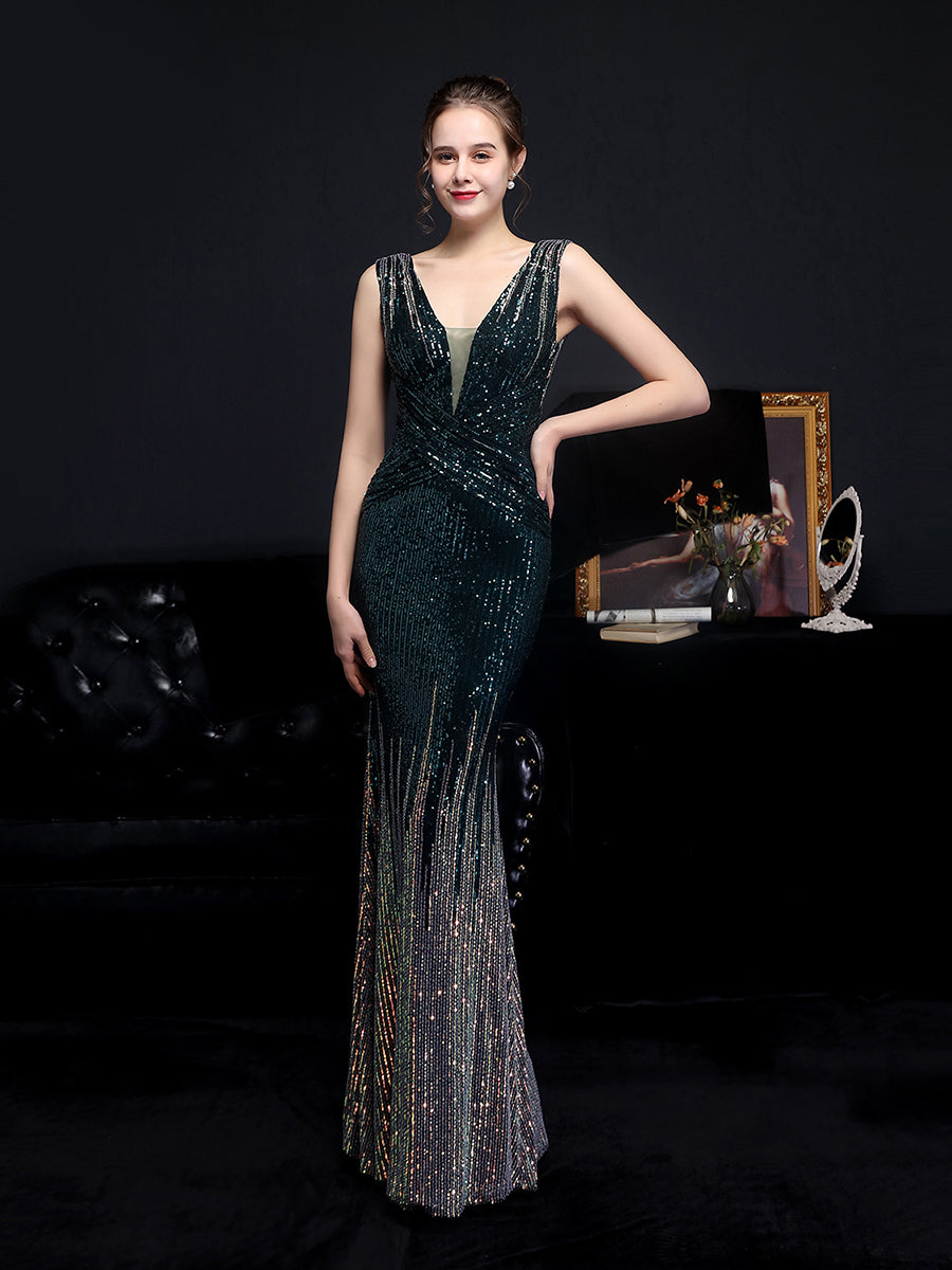 Ladies Fashion Sexy Sequins Banquet Evening Dress Mermaid Skirt