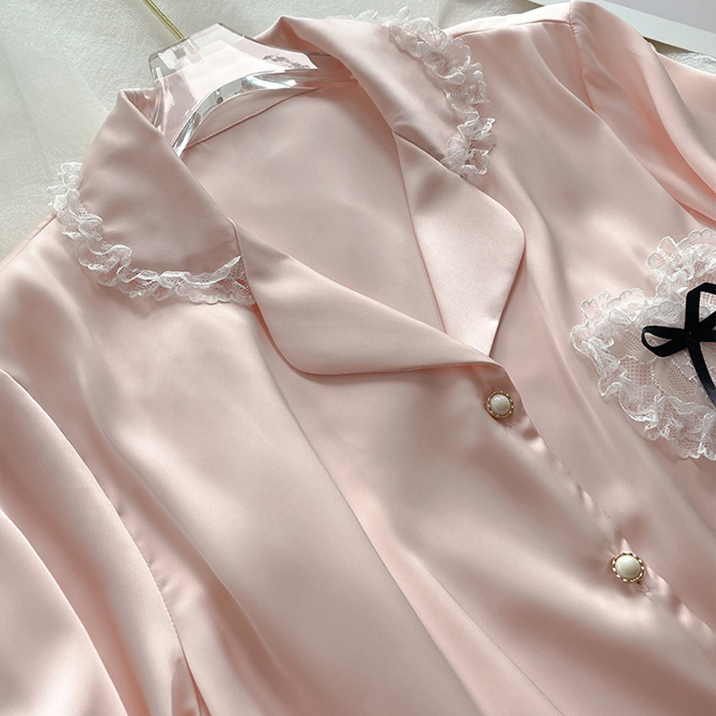 Ladies Heart Bowknot Lace Homewear Short-sleeved Shorts  Silk Suit