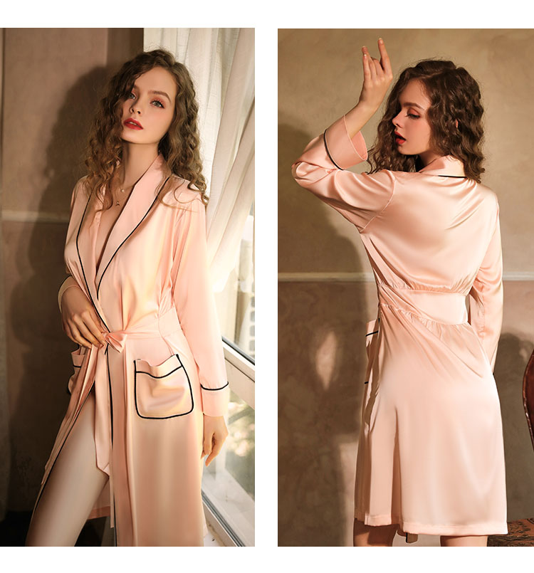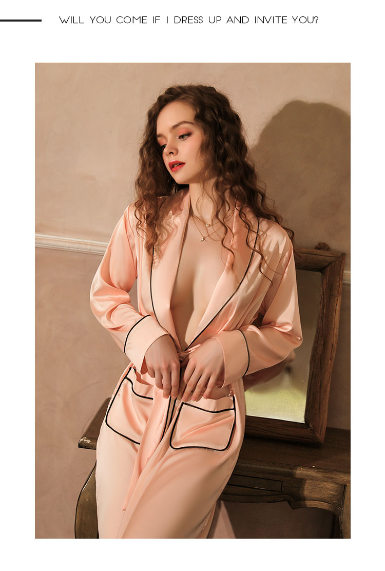 Our Luxurious Silk Luxe Pajama Jacket is made of 95% Polyester 5% Spandex. Soft, lightweight, stretchy material saves you the worry of scratching your skin. This luxurious nightgown will make you look -like.