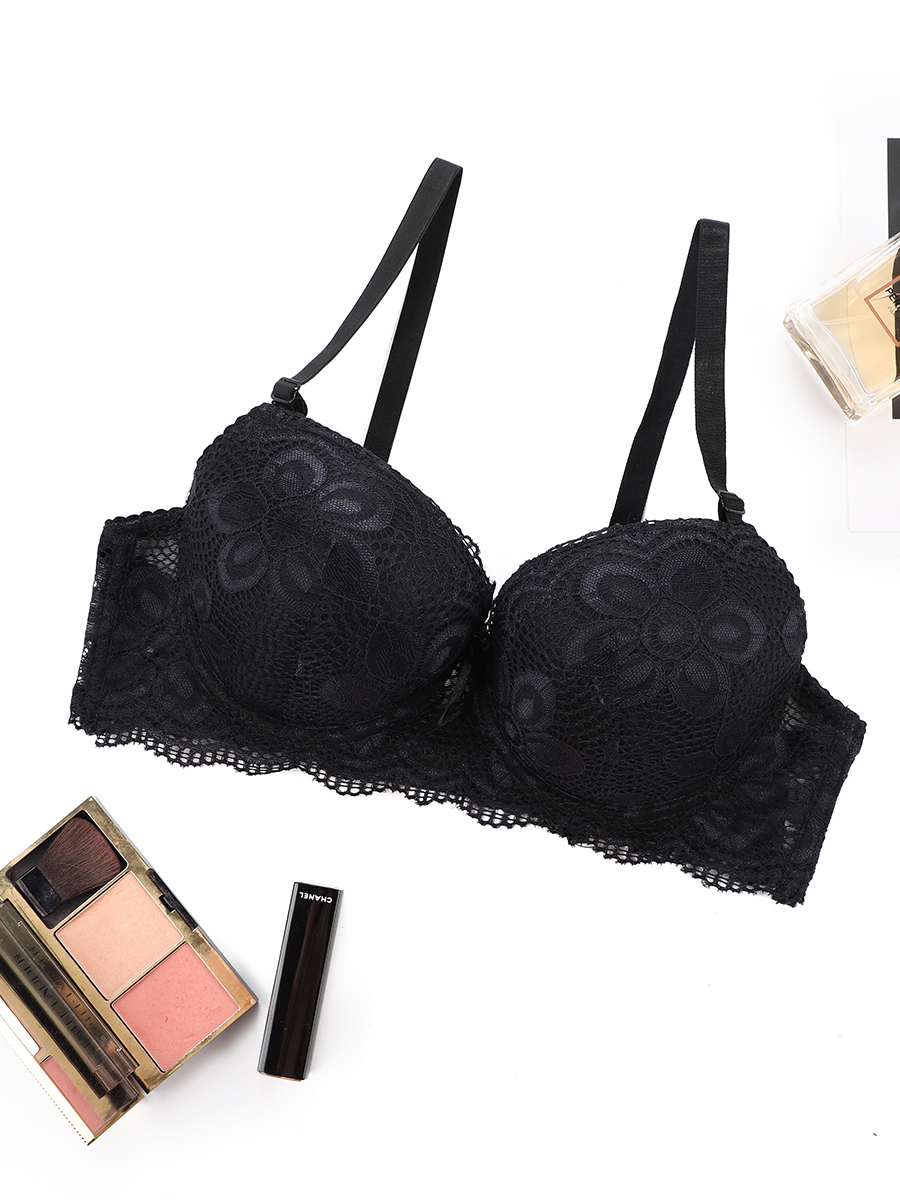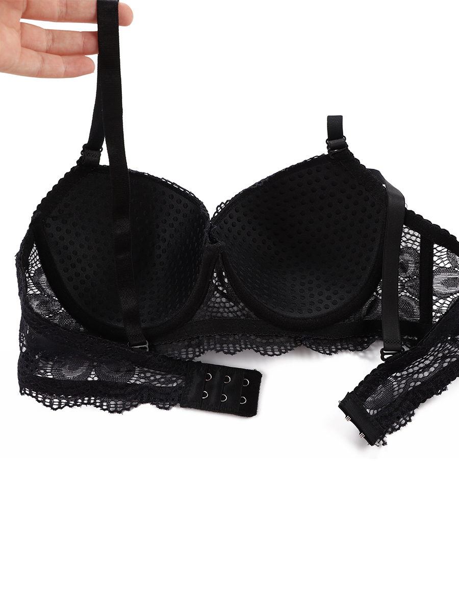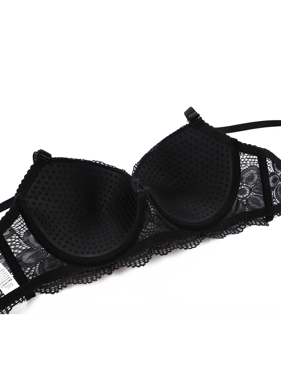 5.This push-up lace bra features a floral lace overlay and foam cups that give this lingerie a restrained touch.