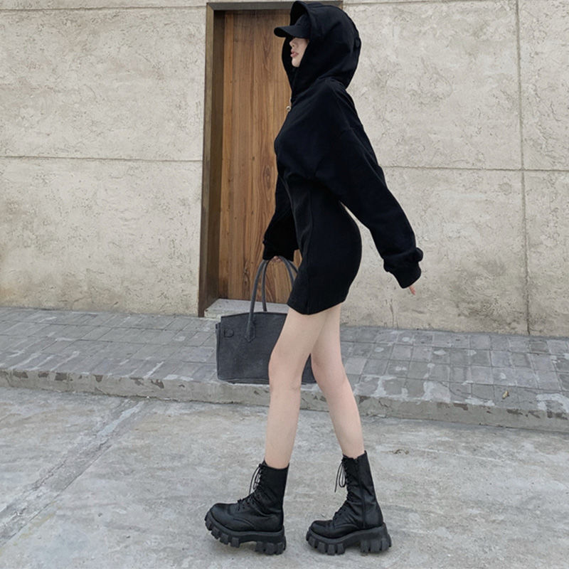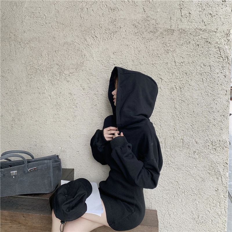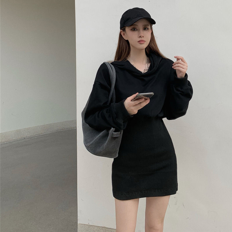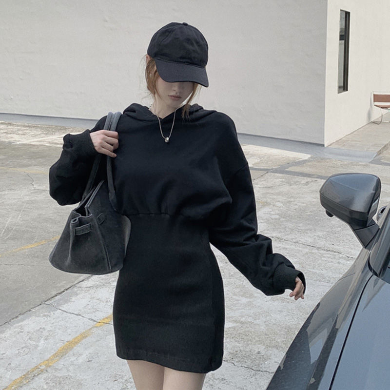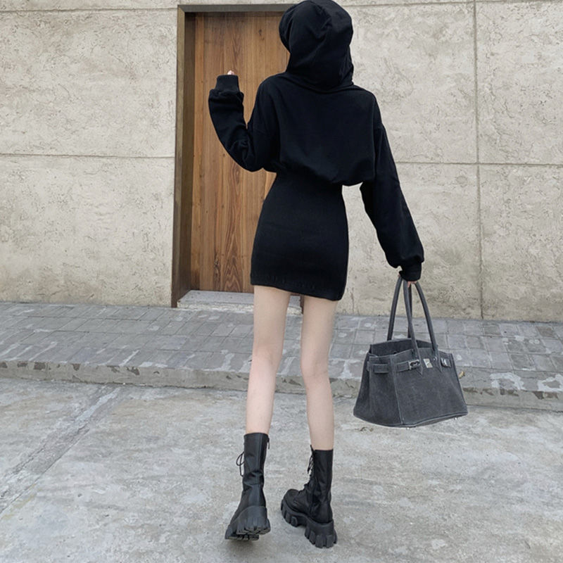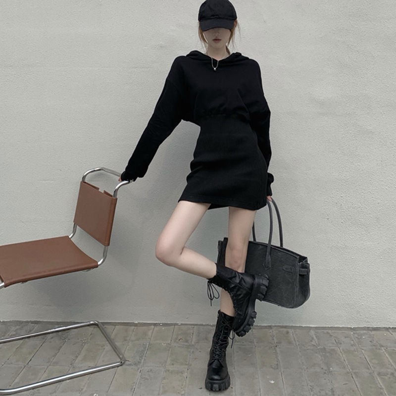 Long sleeve dress women's sexy Korean hot sale Bodycon thickened winter women's basic fashionable clothes Black mini party street guard