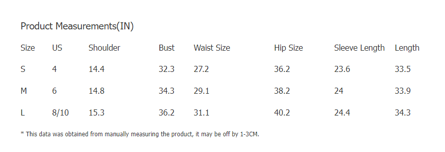 | Product Size | Bust/Chest(cm) | Skirt length(cm) |