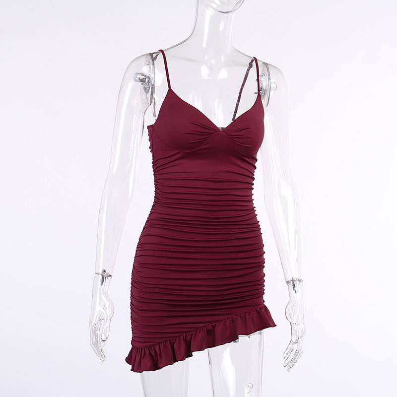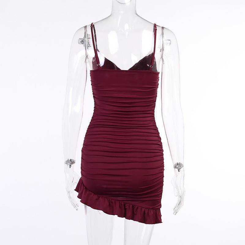Nadafair Ruffles Dress Women Summer Party Clubwear 2021 Spaghetti Strap Ruched Bandage Mini Short Bodycon Women‘s Dress