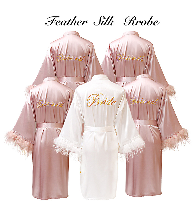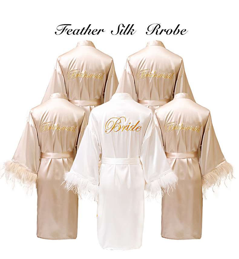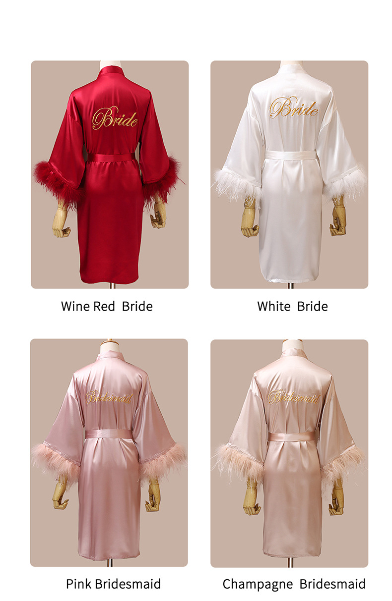New FEATHER bride bridesmaid wedding dress short satin 2023 pajamas underwear women's kimono bathrobe robe pajamas