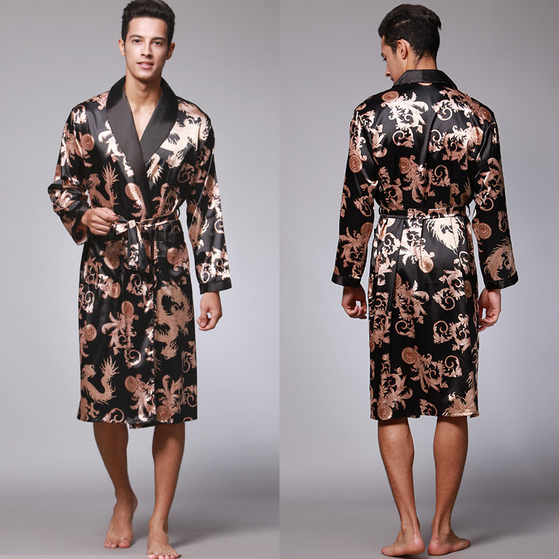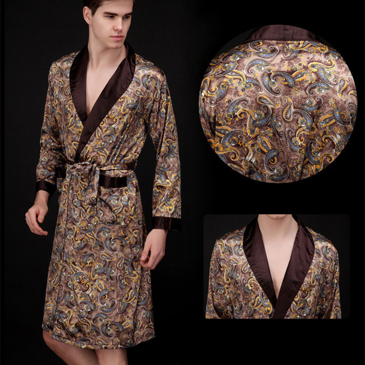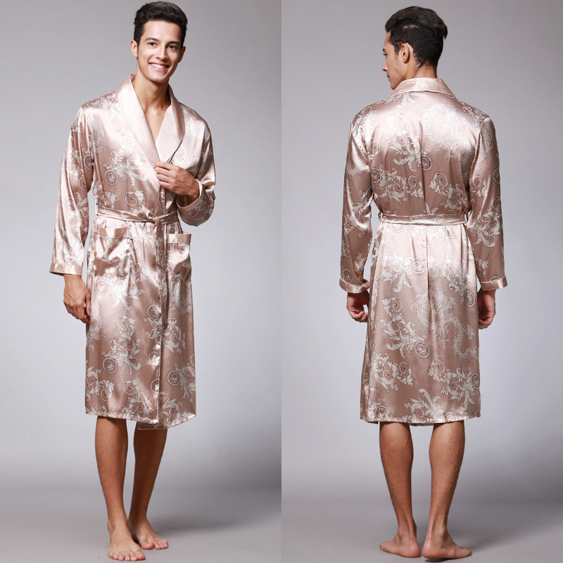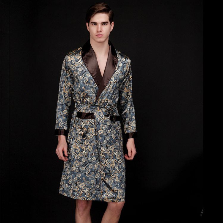 Product introduction: Fabric polyester fiber (polyester), simple and fashionable, versatile, soft and comfortable, smooth texture, loose and comfortable, collar design, fashionable printing, comfortable long-sleeved men's nightgown.