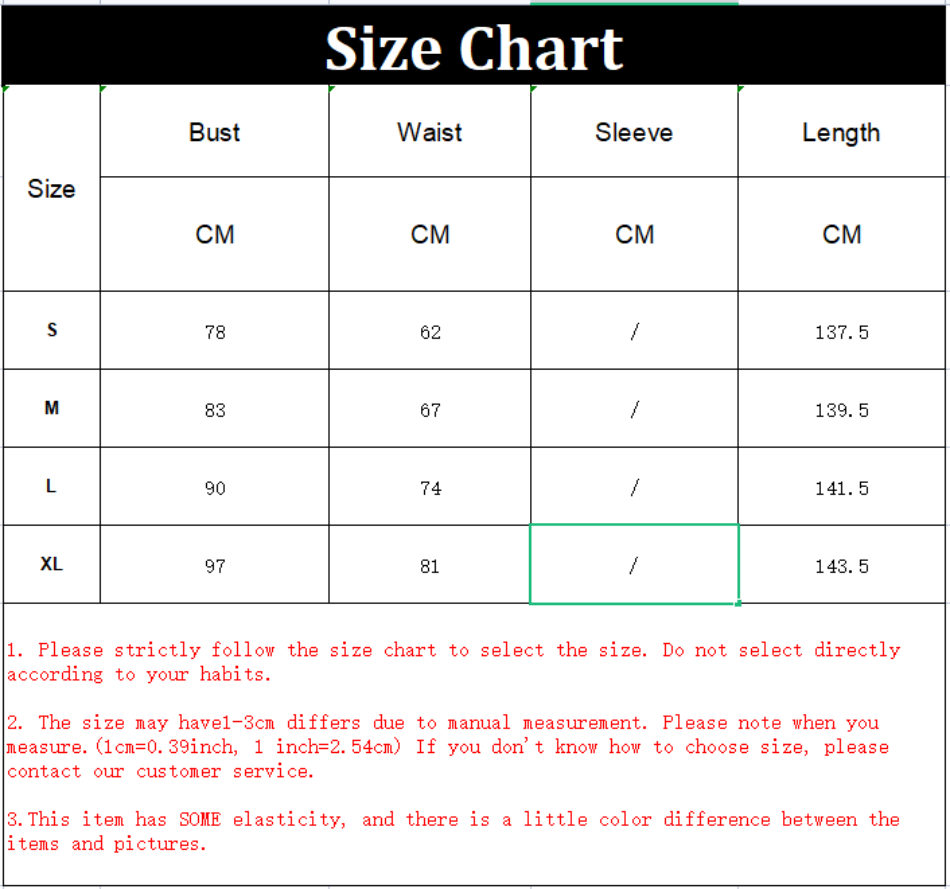 | Product Size | Shoulder(cm) | Bust/Chest(cm) | Sleeve(cm) | Skirt length(cm) | Waist(cm) |