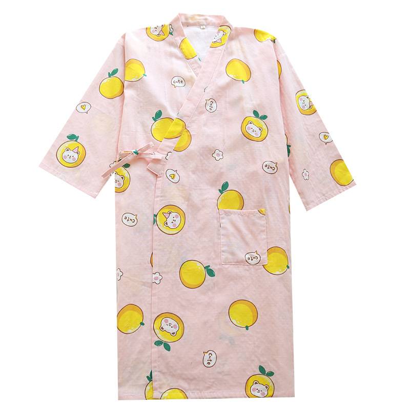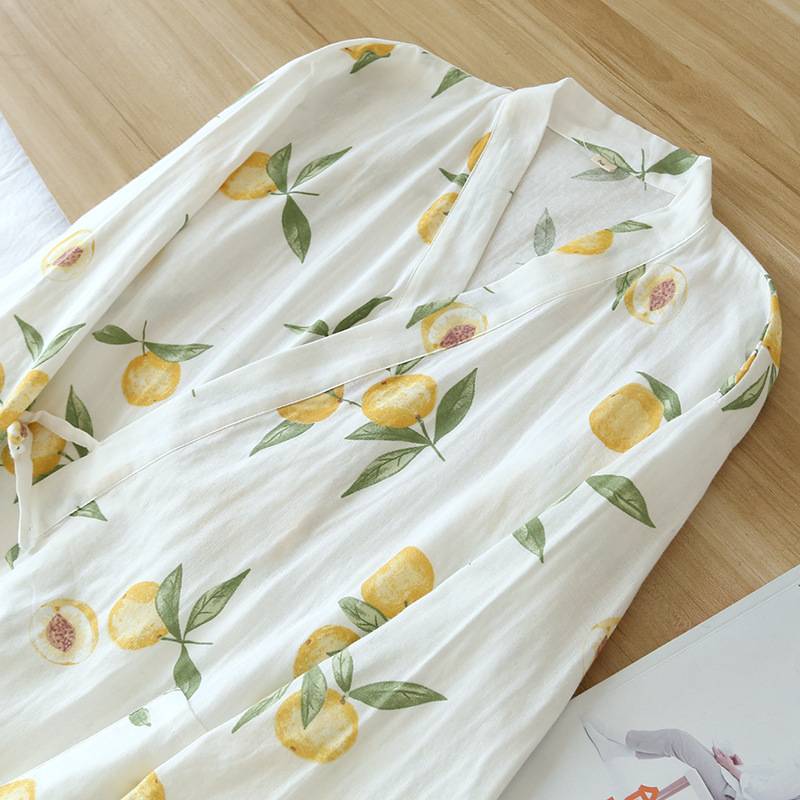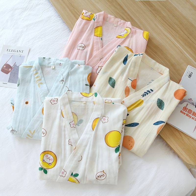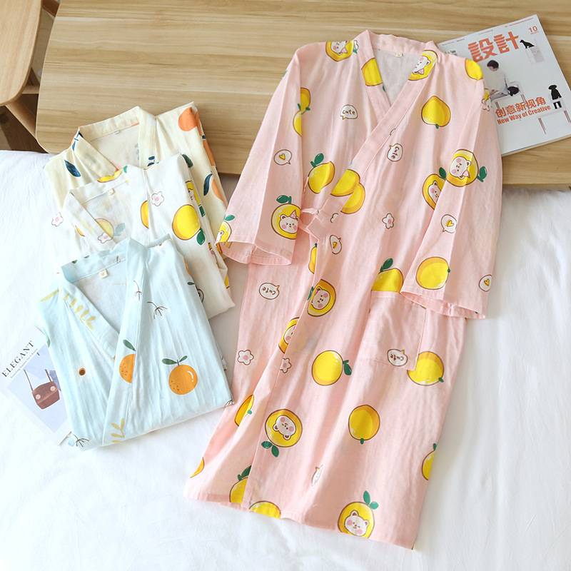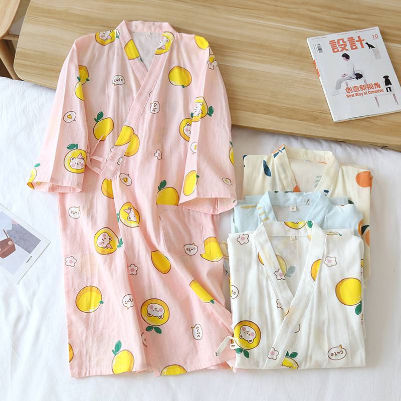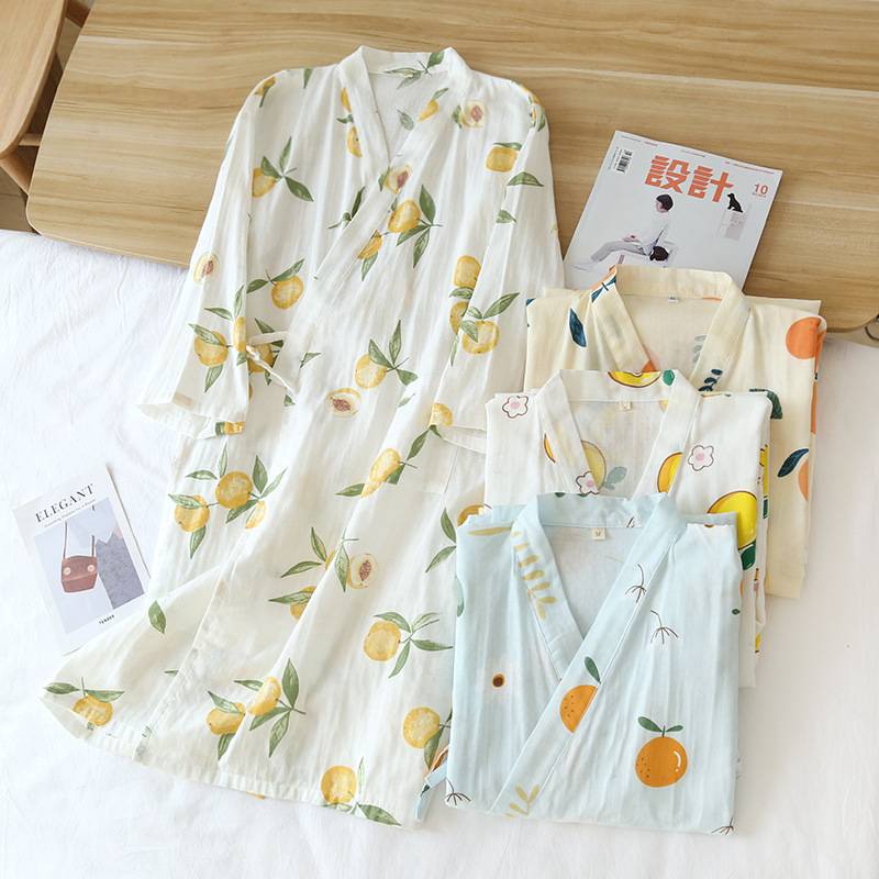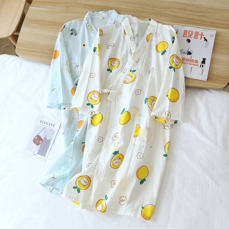New Ladies Pajamas  Cotton Gauze Kimono Robes for Women Thin  7 Points Sleeve SPA Home Wear Cotton Bathrobe Summer Cool