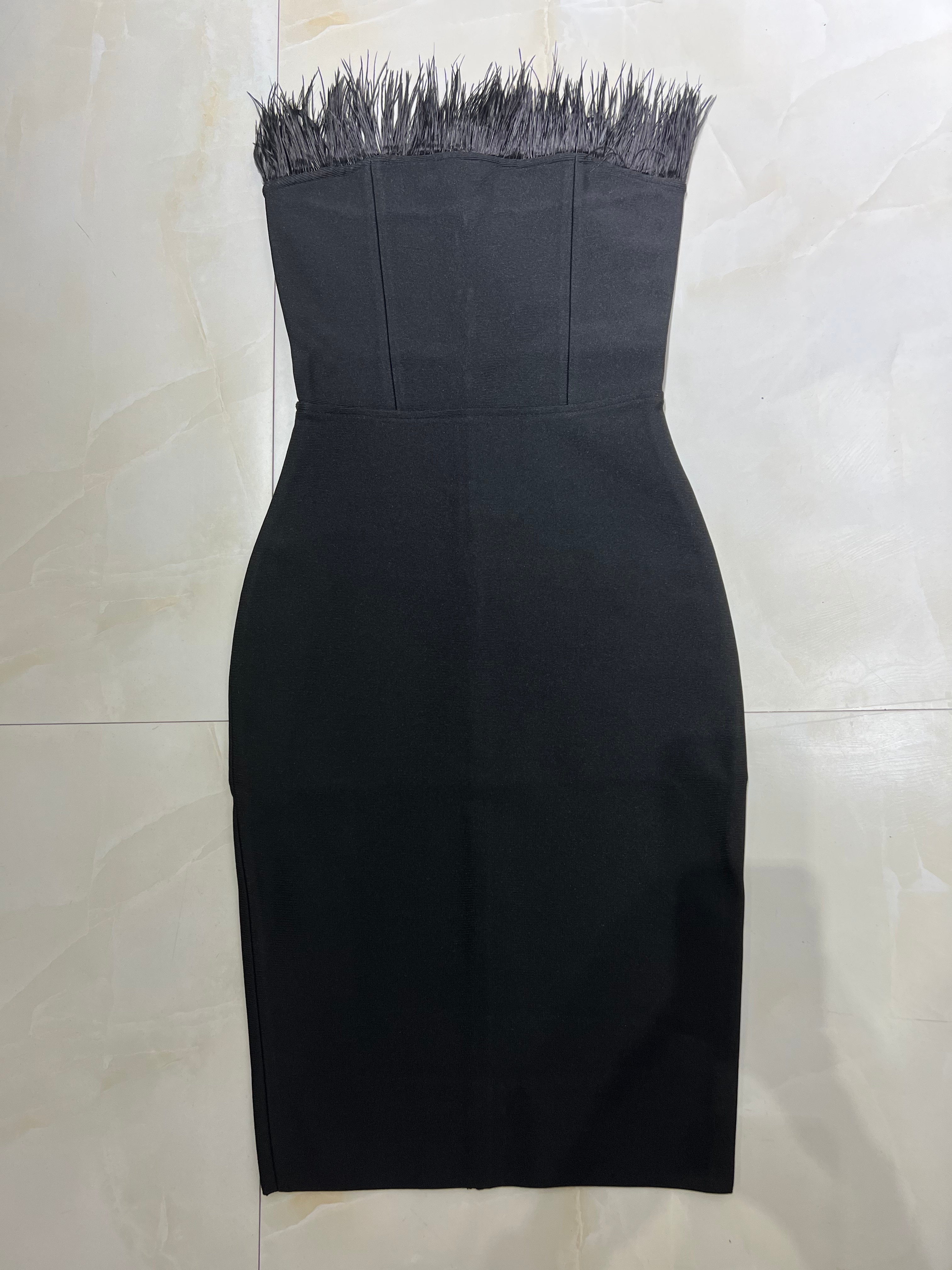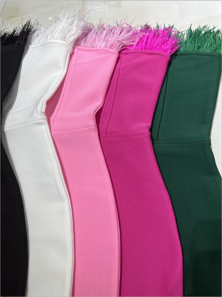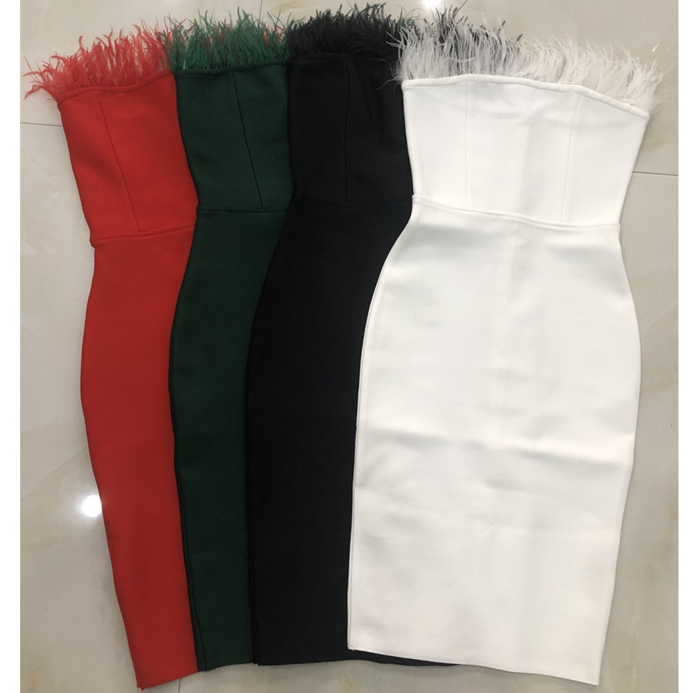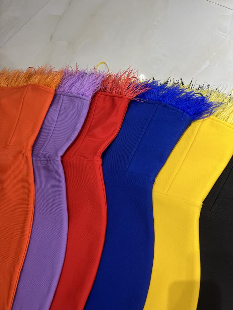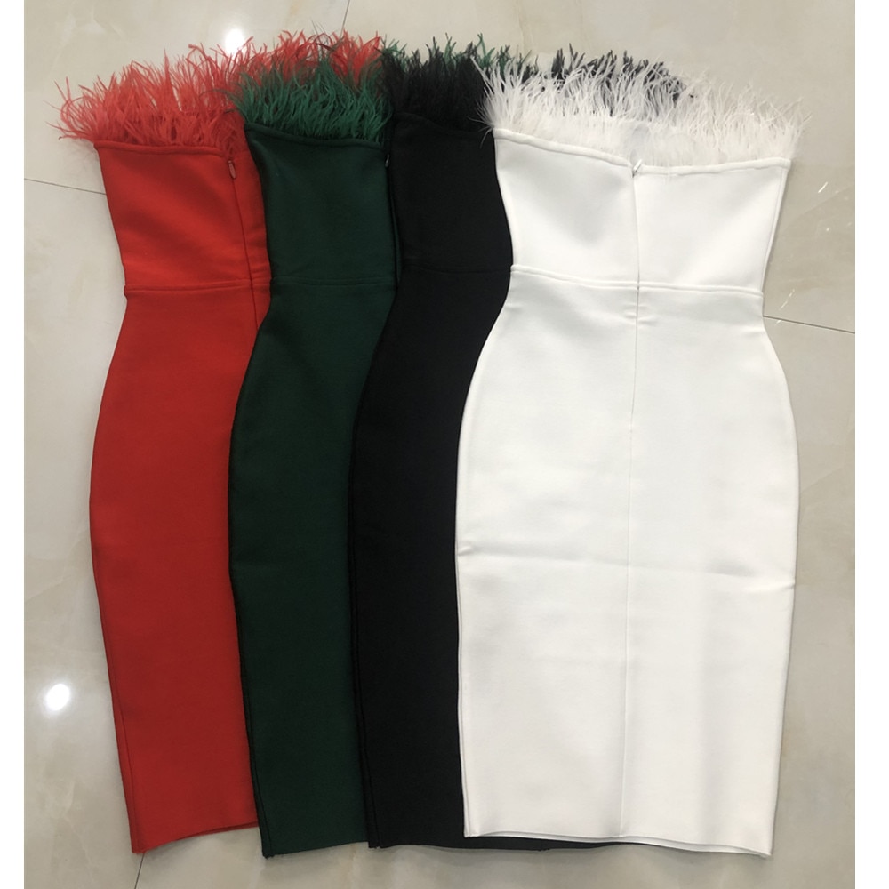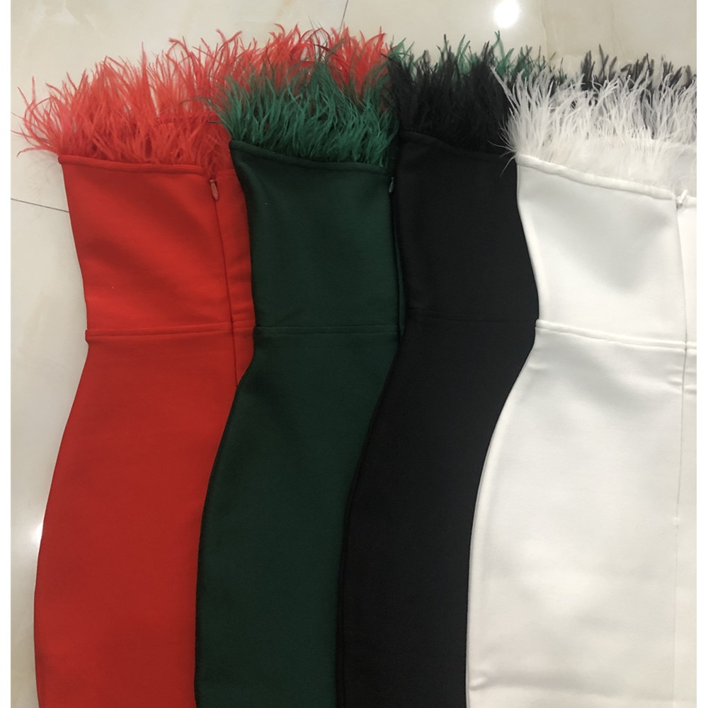 New Summer Sexy Strapless Backless Feather Black Midi Women Bodycon Bandage Dress 2022 Designer Fashion Party Club Dress