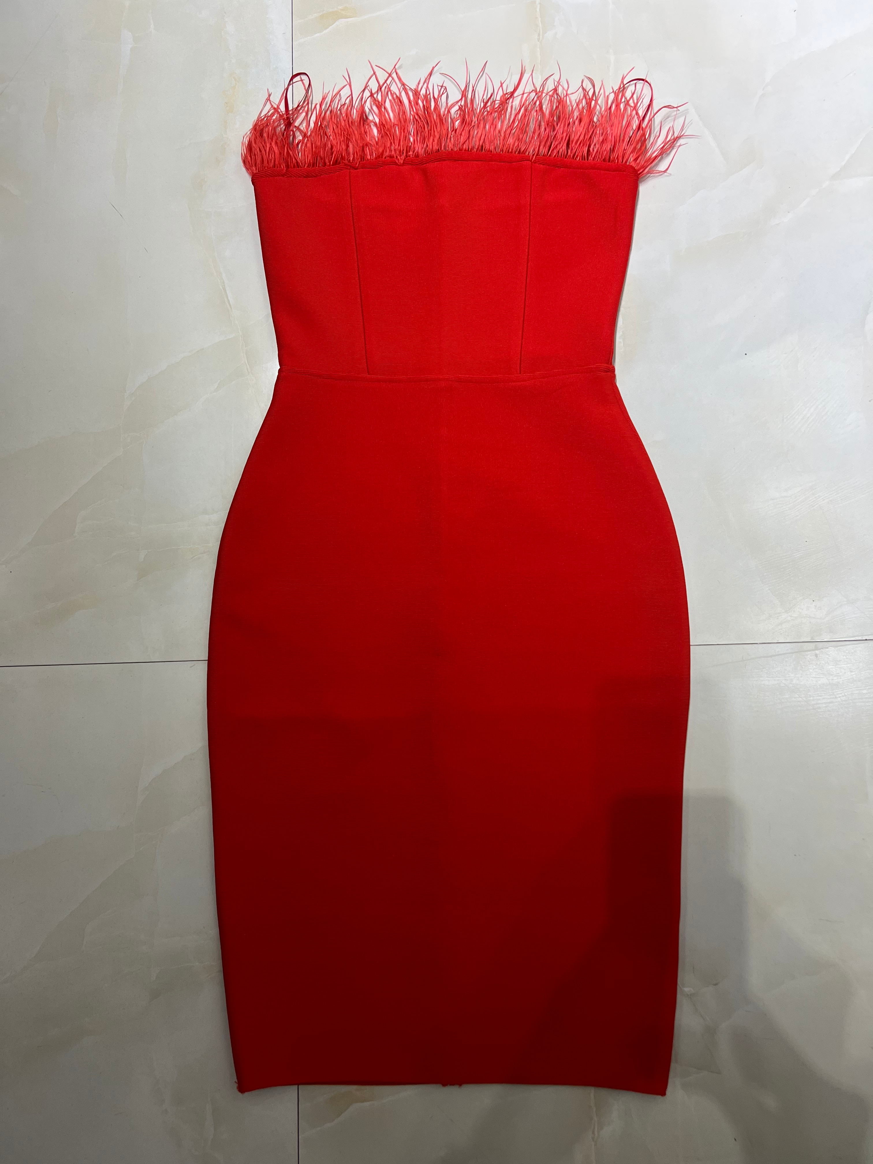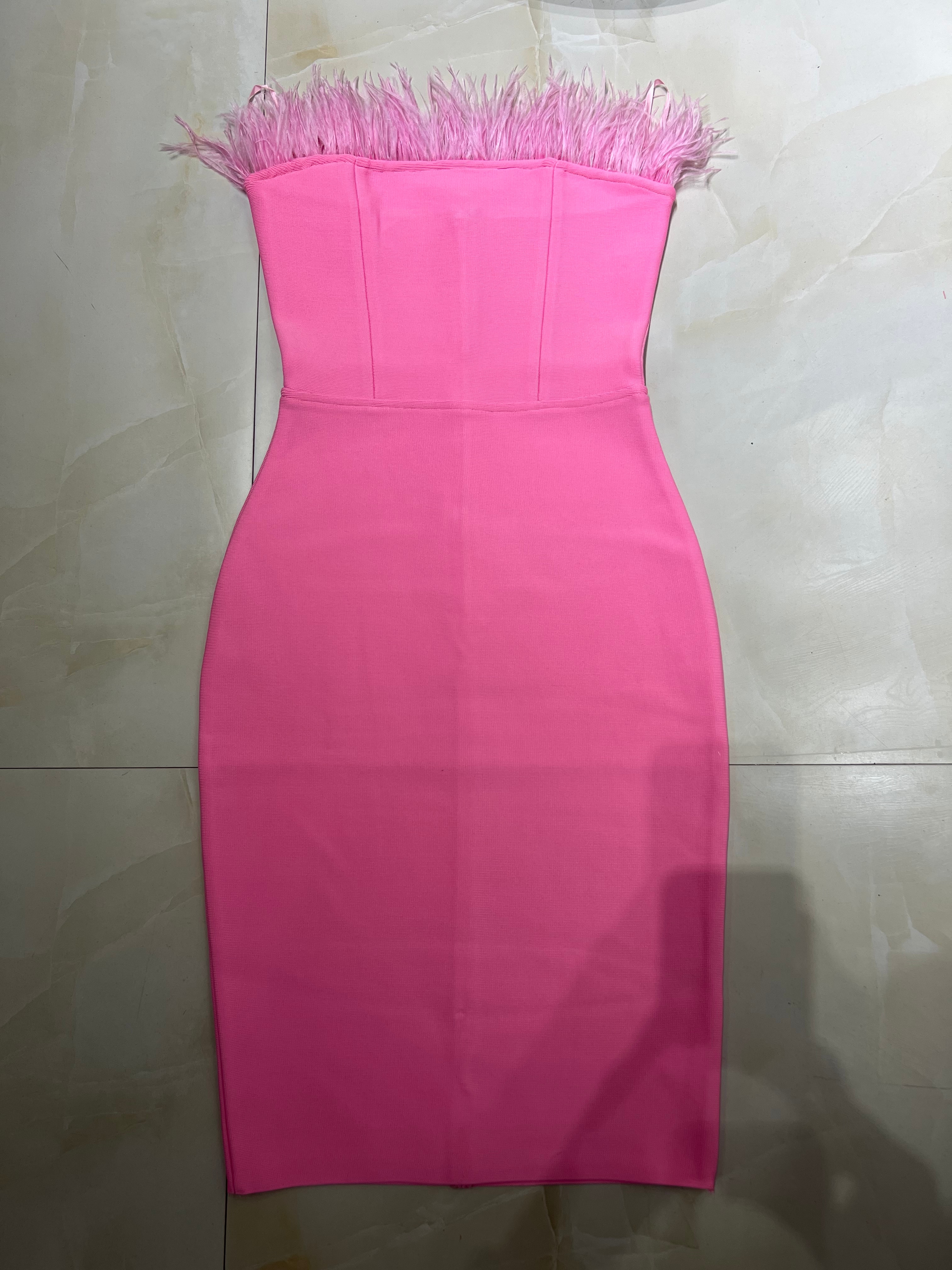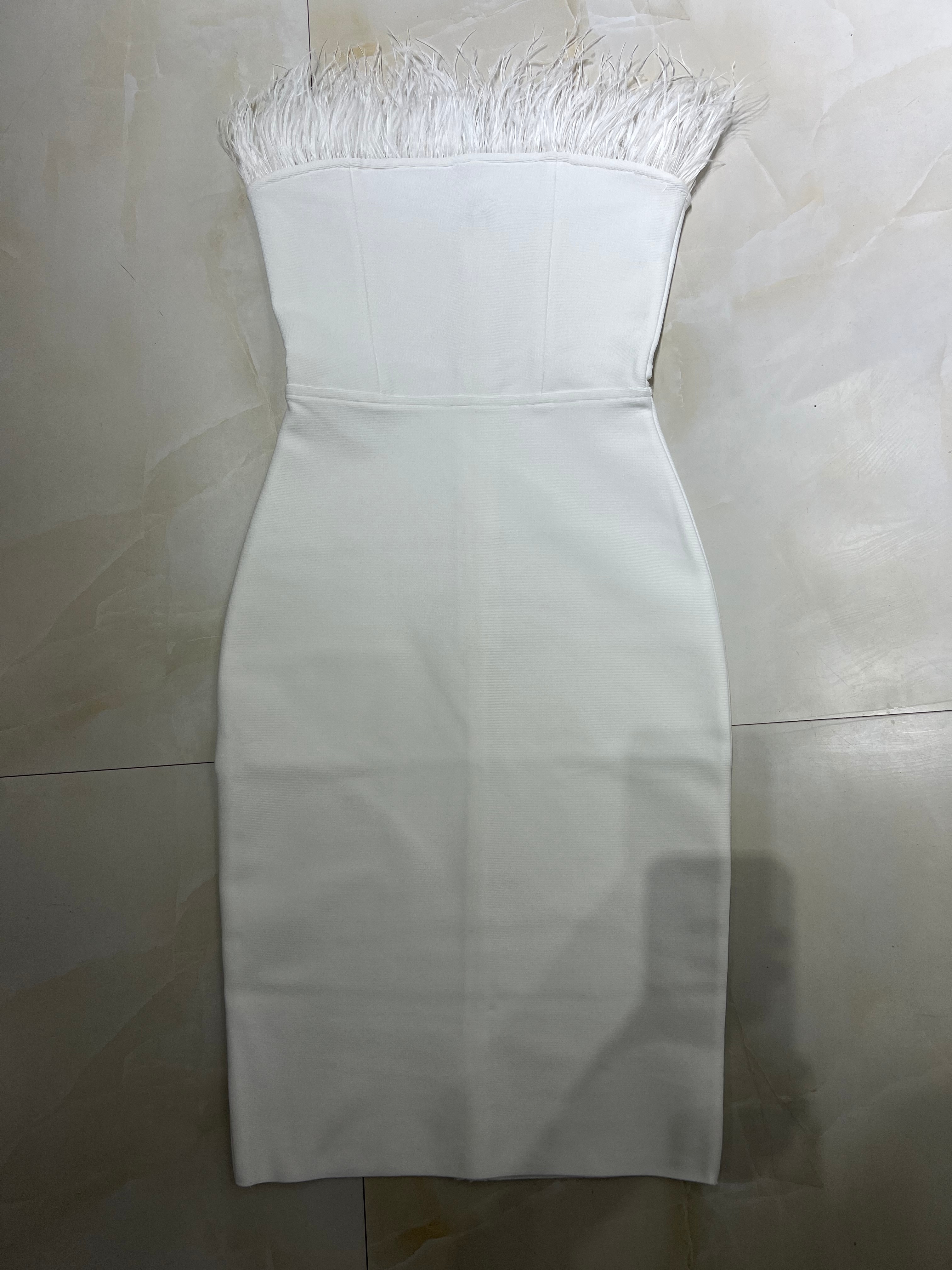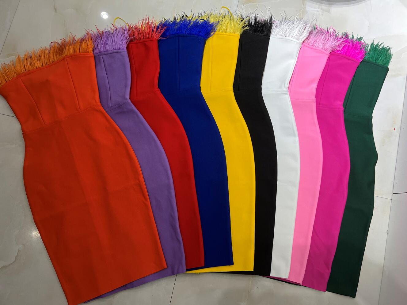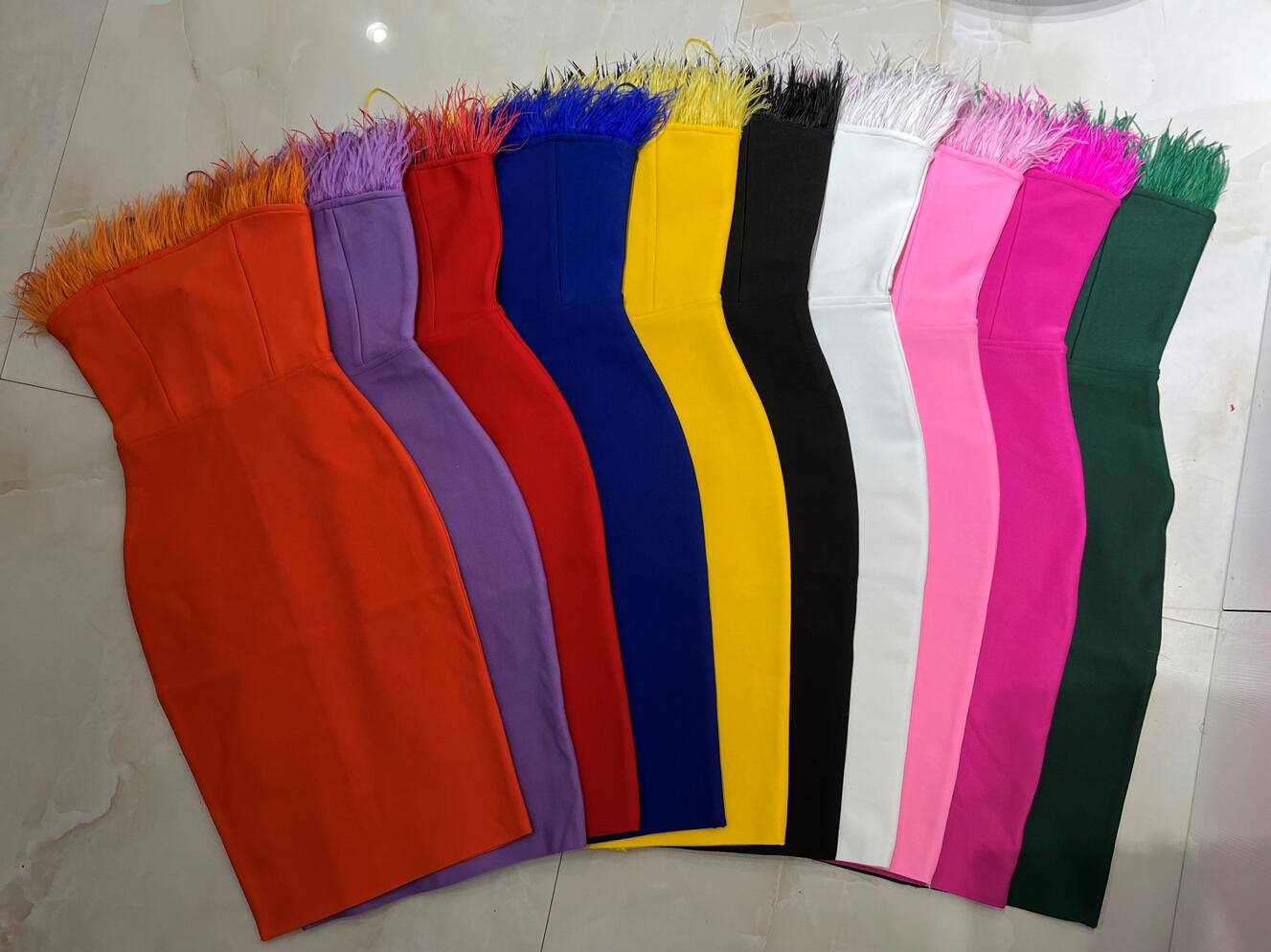 New Summer Sexy Strapless Backless Feather Black Midi Women Bodycon Bandage Dress 2022 Designer Fashion Party Club Dress