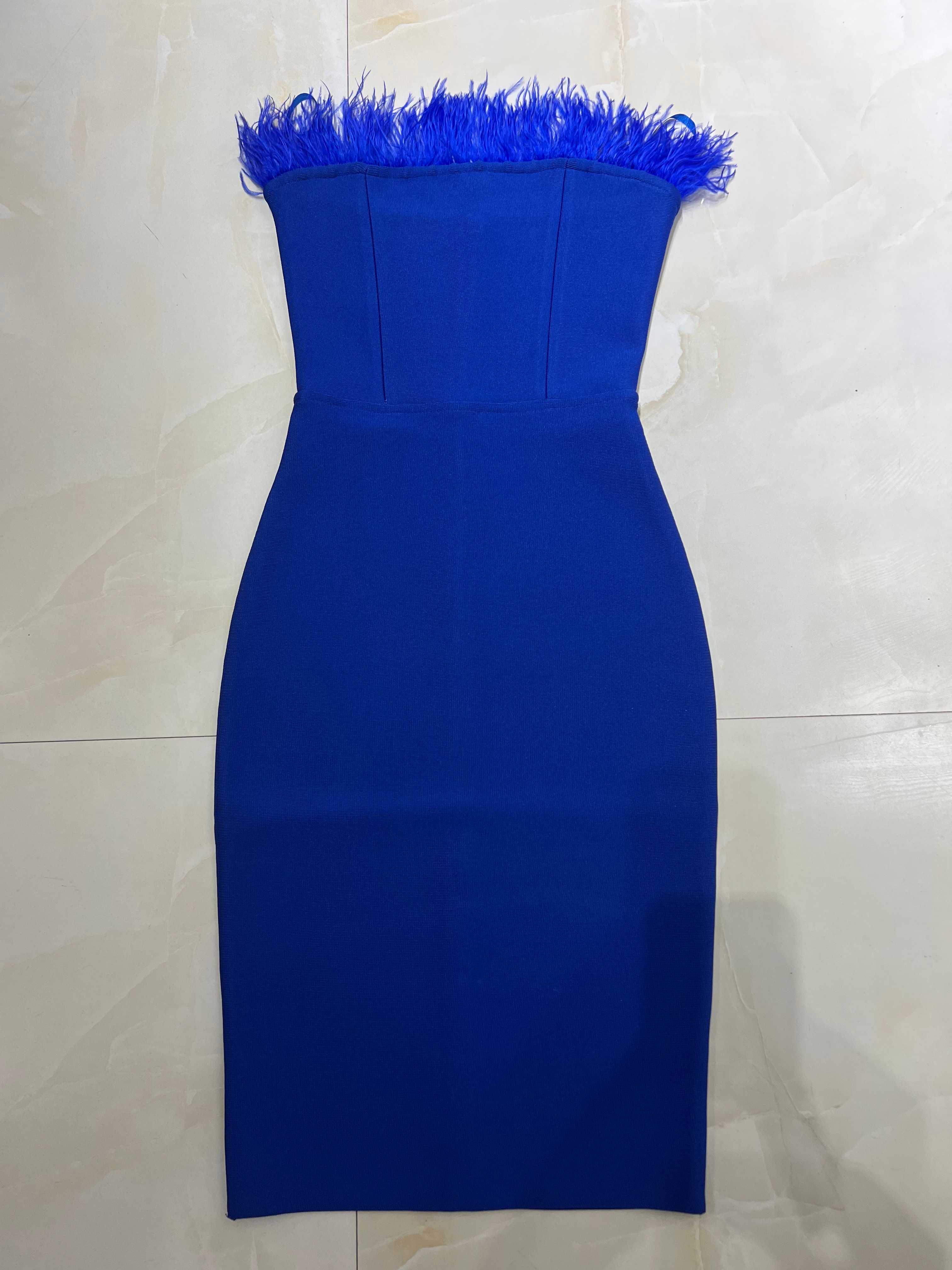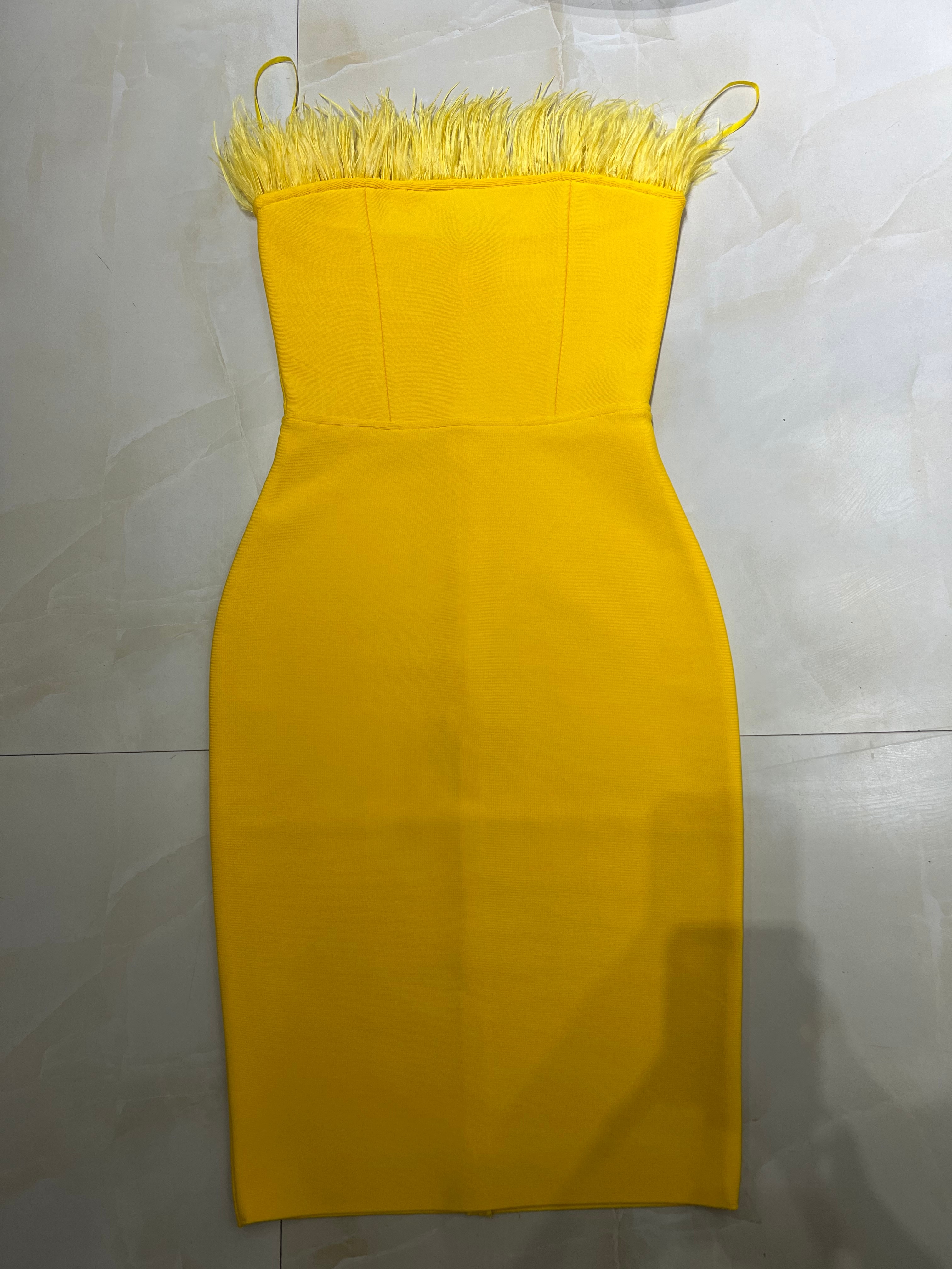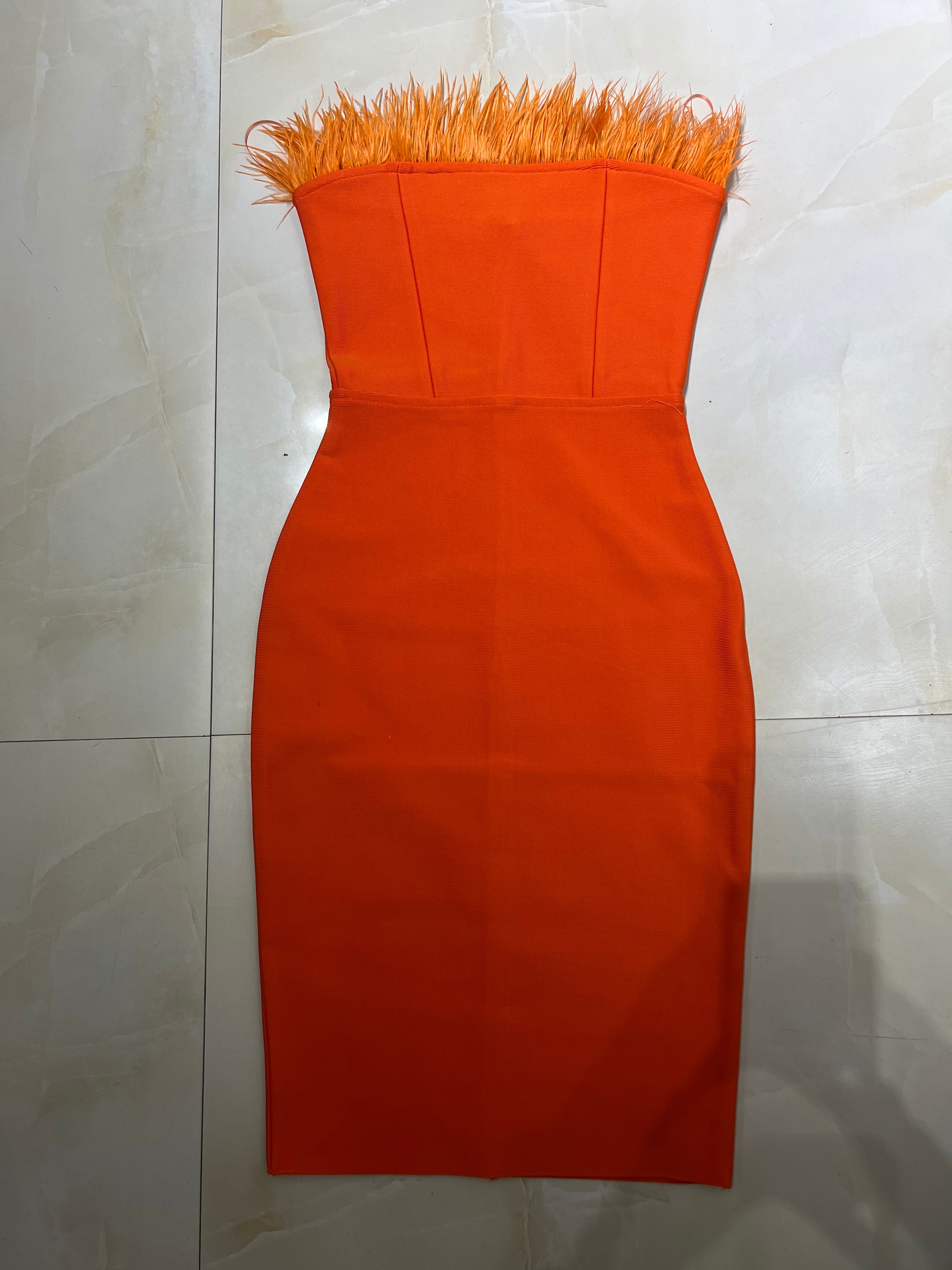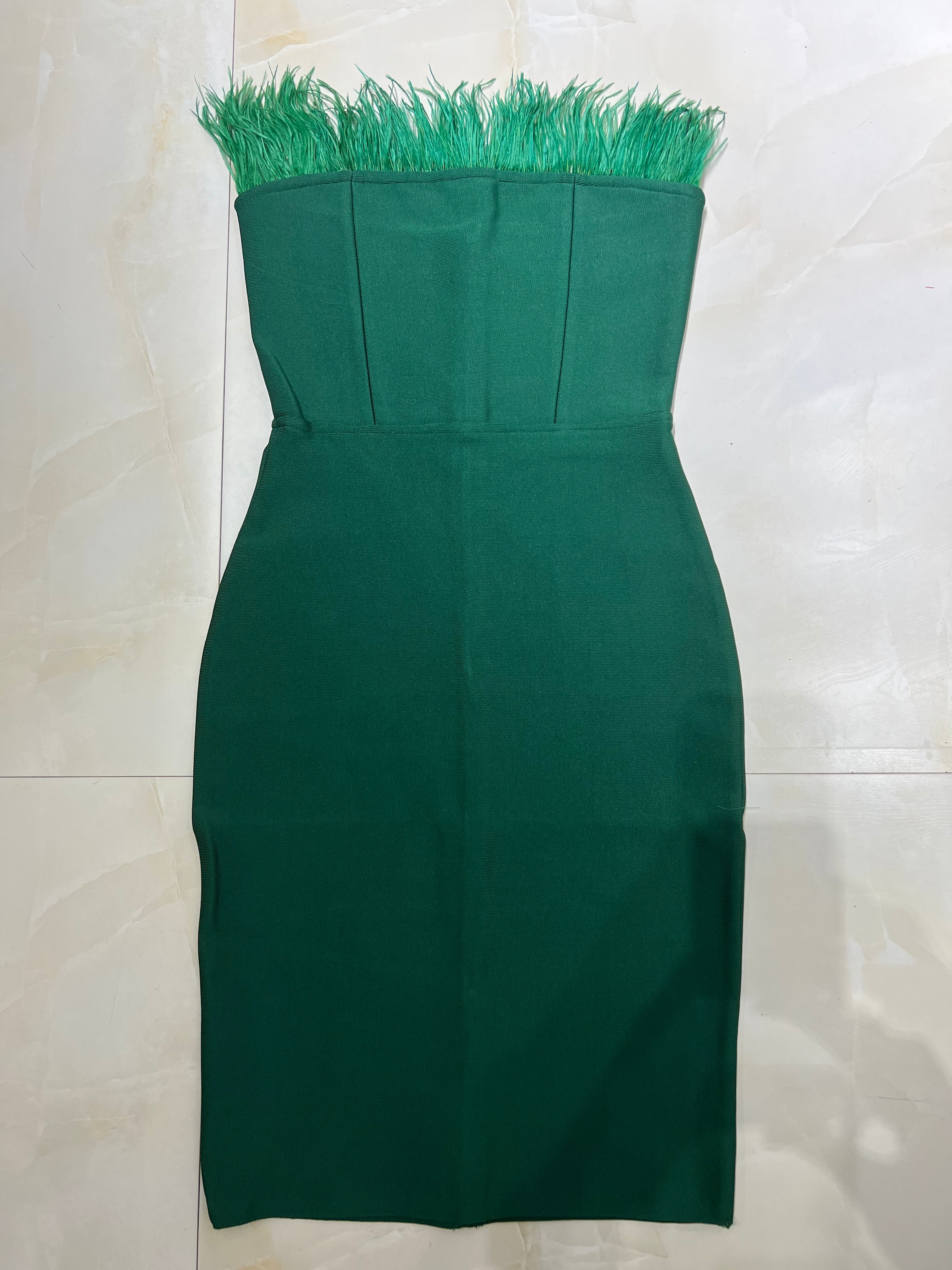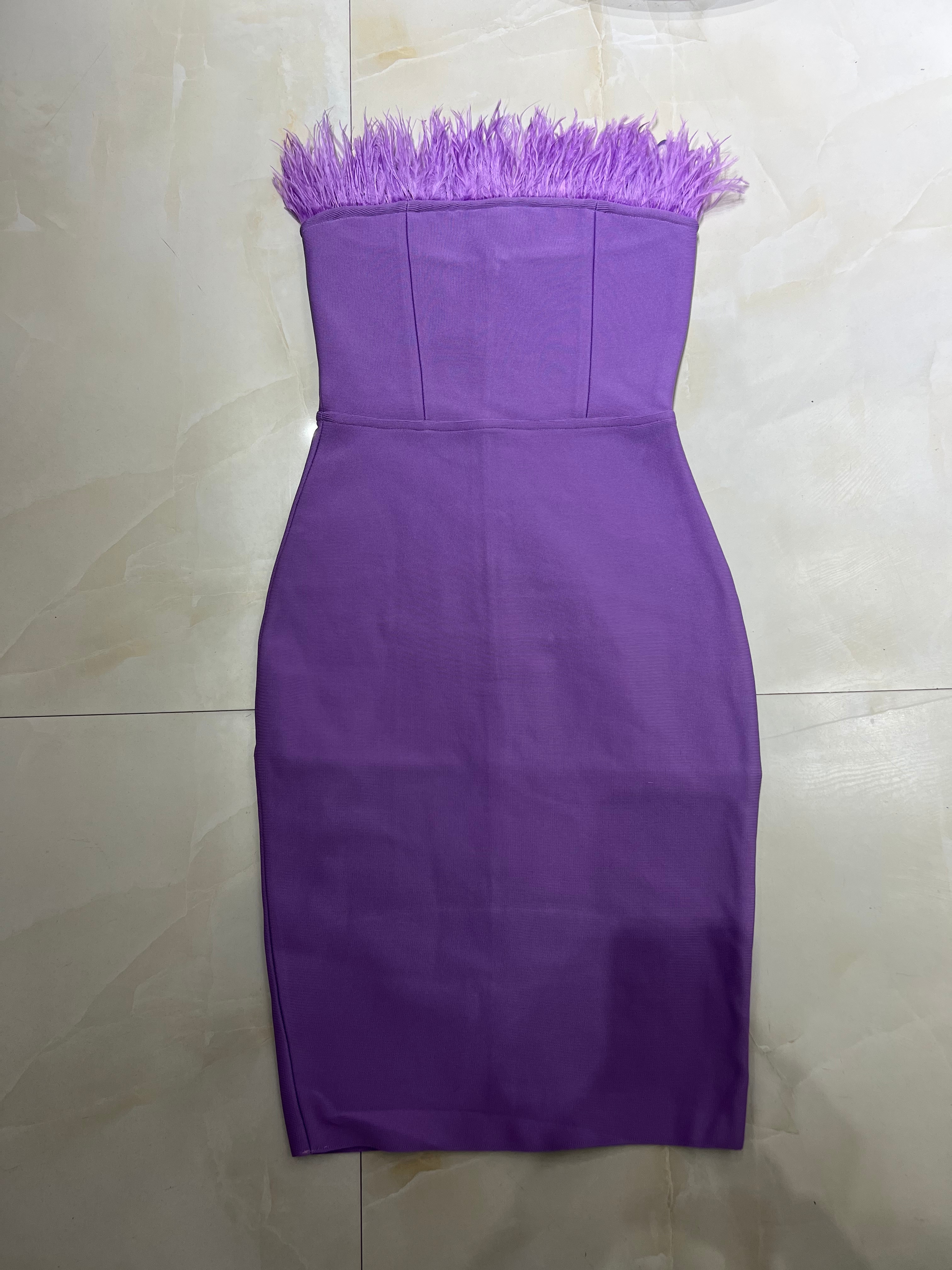 New Summer Sexy Strapless Backless Feather Black Midi Women Bodycon Bandage Dress 2022 Designer Fashion Party Club Dress