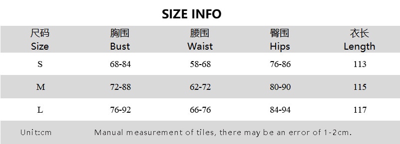 | Product Size | Bust/Chest(cm) | Skirt length(cm) | Waist(cm) |