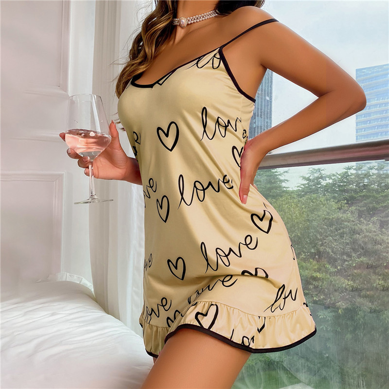 Features:New Sexy Suspenders Pajamas Women's Simple Loose Printed Home Clothes