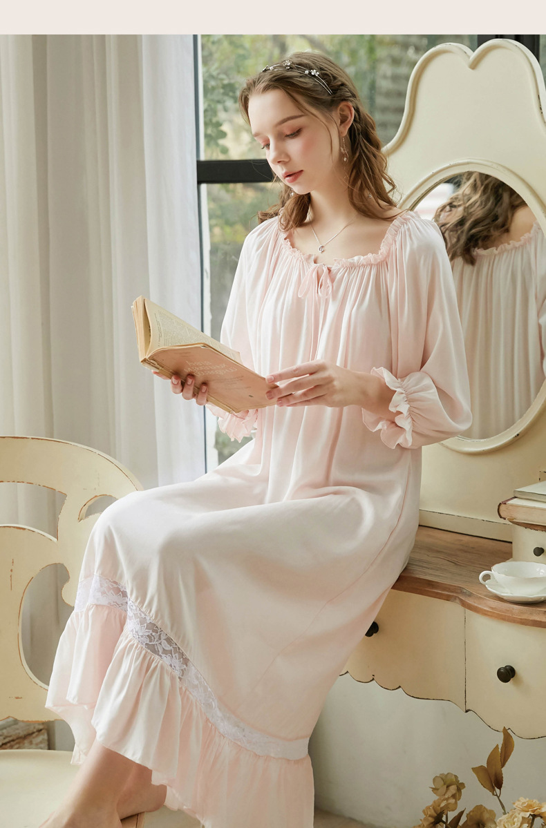 Nightdress women's spring long skirt cute court sweet style pajamas autumn long loose large size home clothes cotton