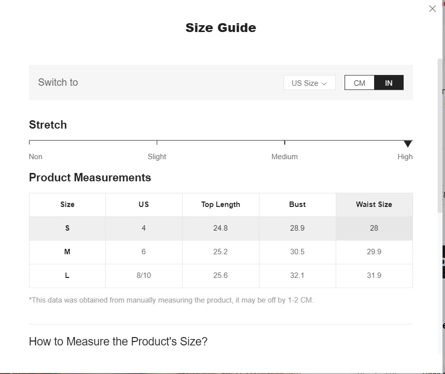 | Product Size | Bust/Chest(cm) | Waist(cm) |
