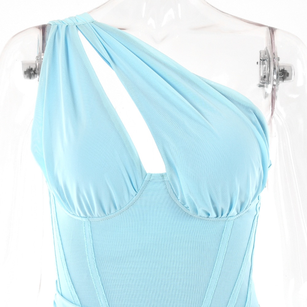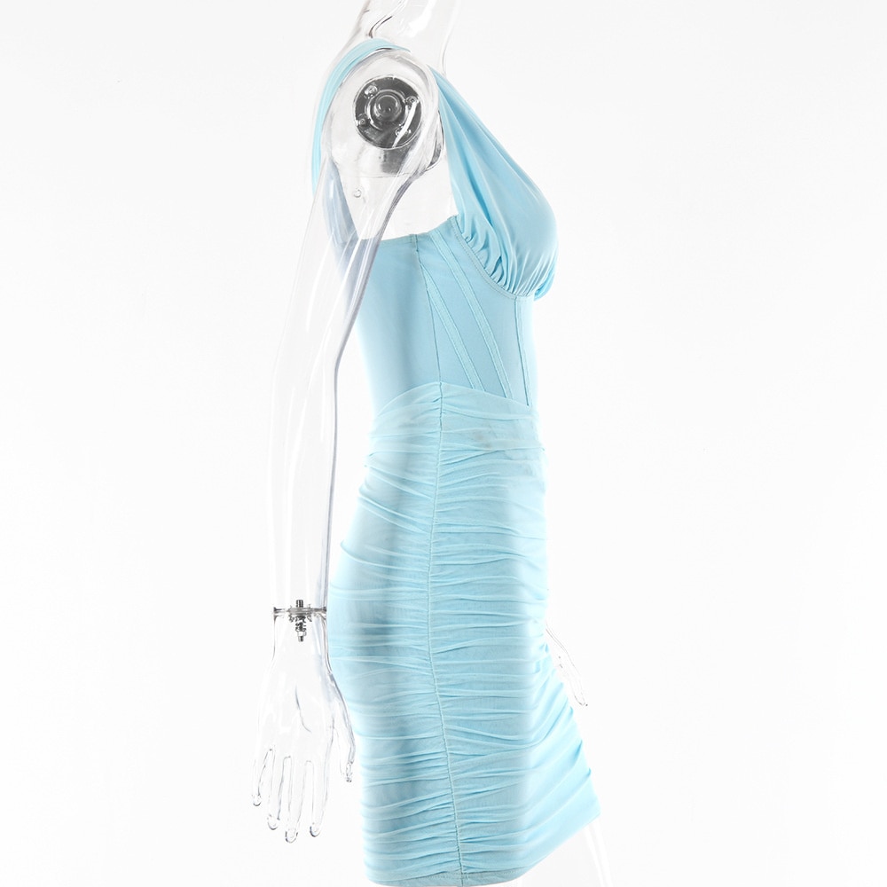 One Shoulder Mesh Sexy Bodycon Dresses Women 2022 White Pleated Mini Summer Dress Elegant Club Party Dresses