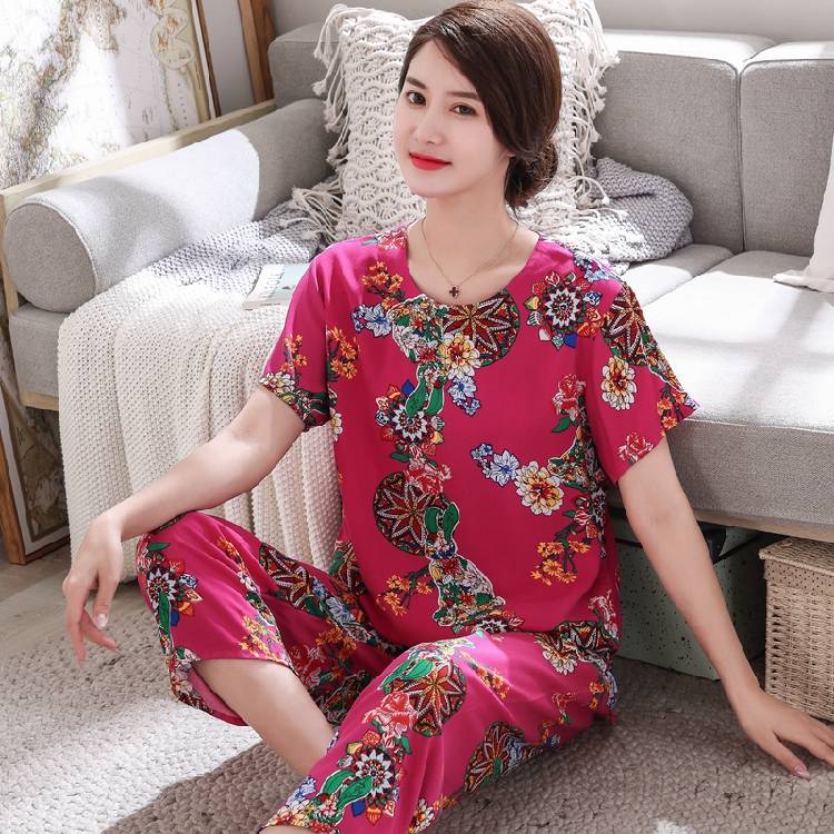 Pajamas set middle aged and elderly women's mom summer cotton Nightgown two piece suit grandma short sleeve large size new