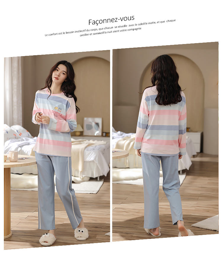 Pajamas women's spring and autumn cotton long-sleeved trousers  casual cute  plus size home service two-piece suit can be worn outside