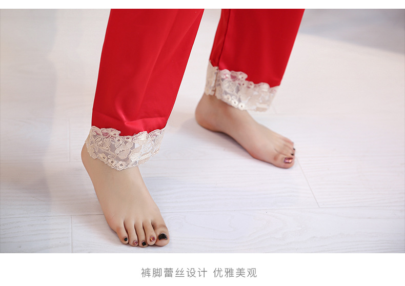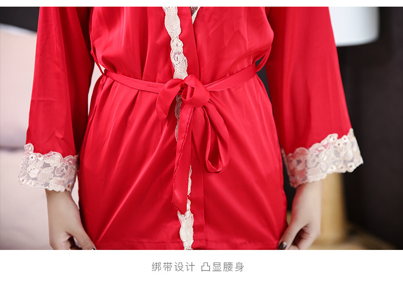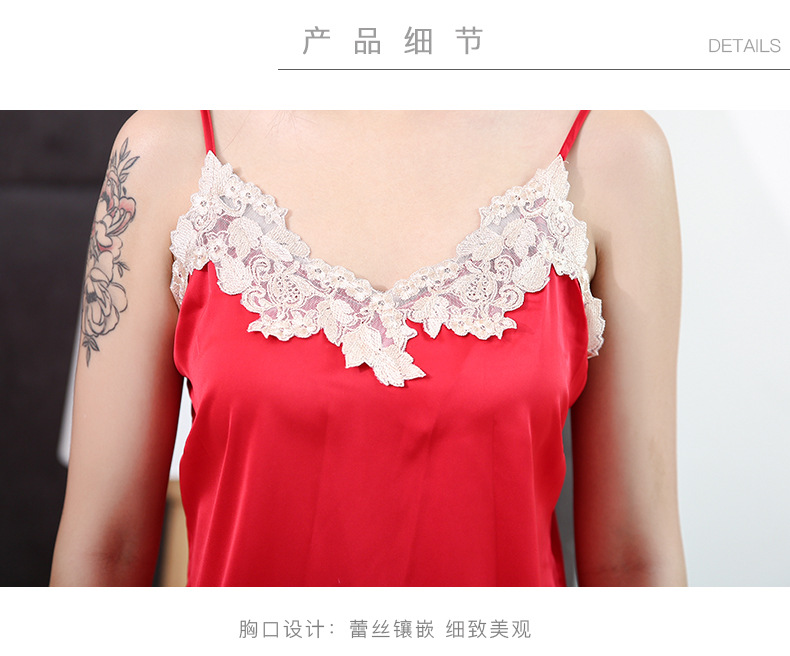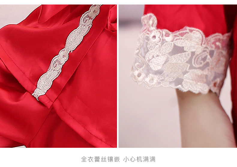Pajamas women's summer imitation silk suspenders nightgown home service lace sexy ladies ice silk pajamas three-piece suit