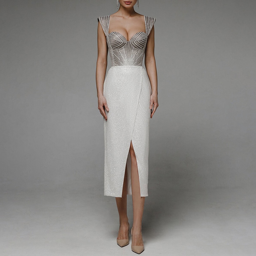 Party Dresses Women Evening Elegant Sexy Spaghetti Strap Sleeveless Backless High Waist Slit Wedding Prom Gown Bodycon Dress