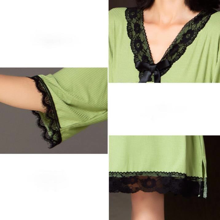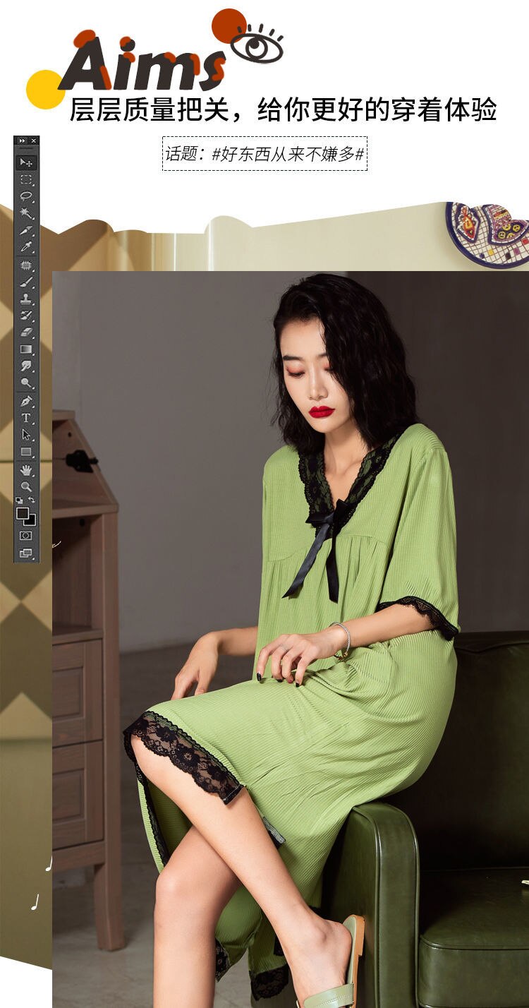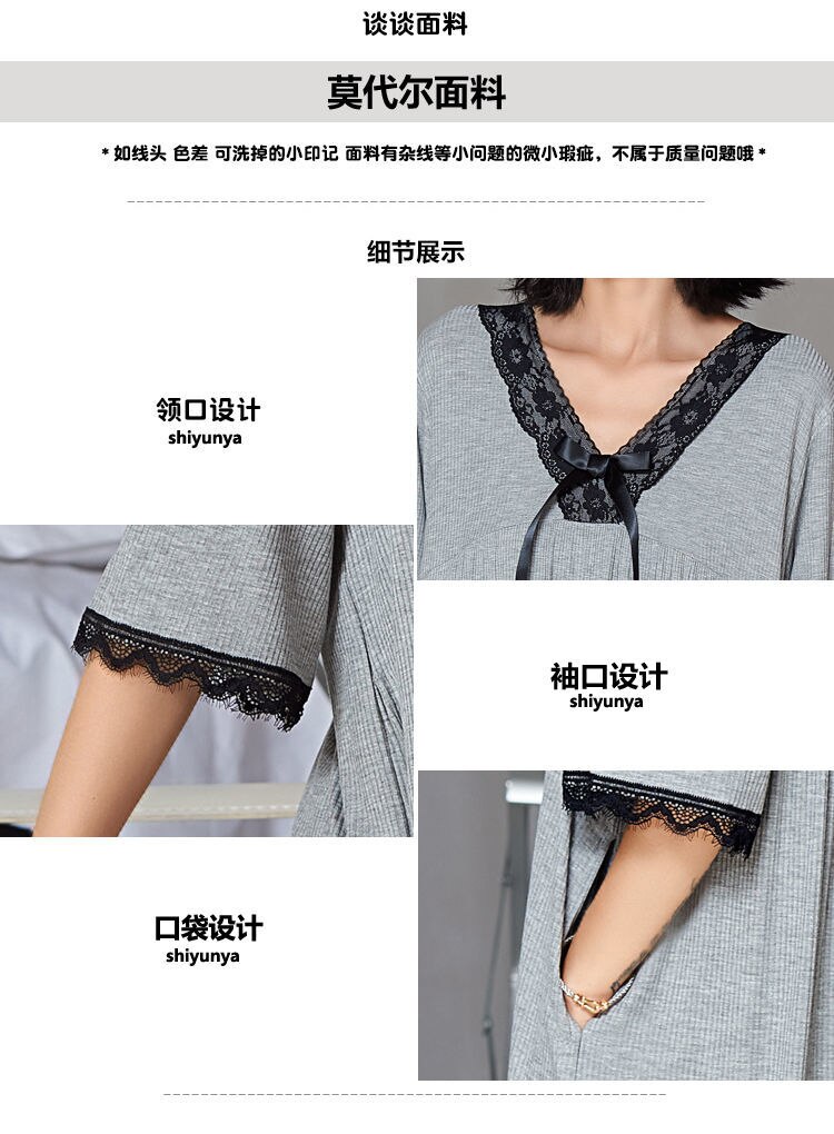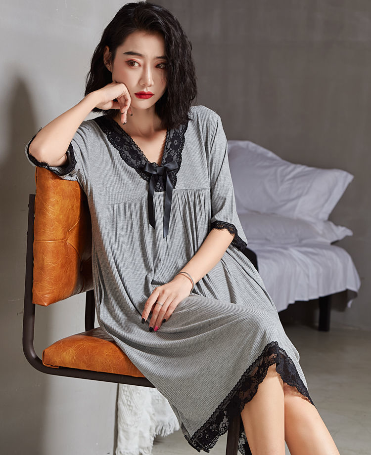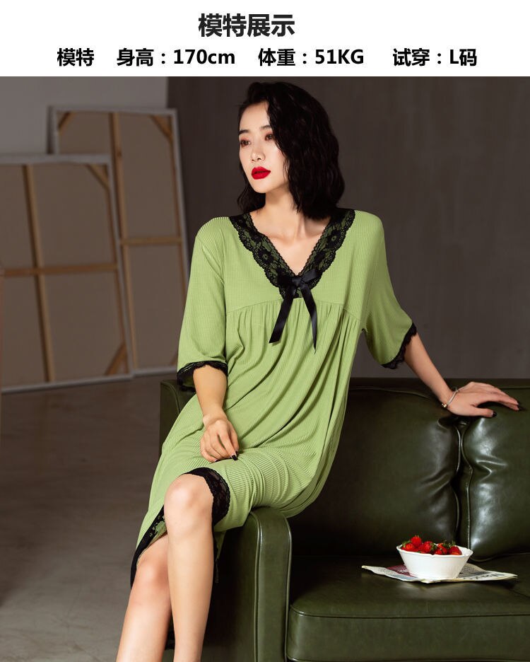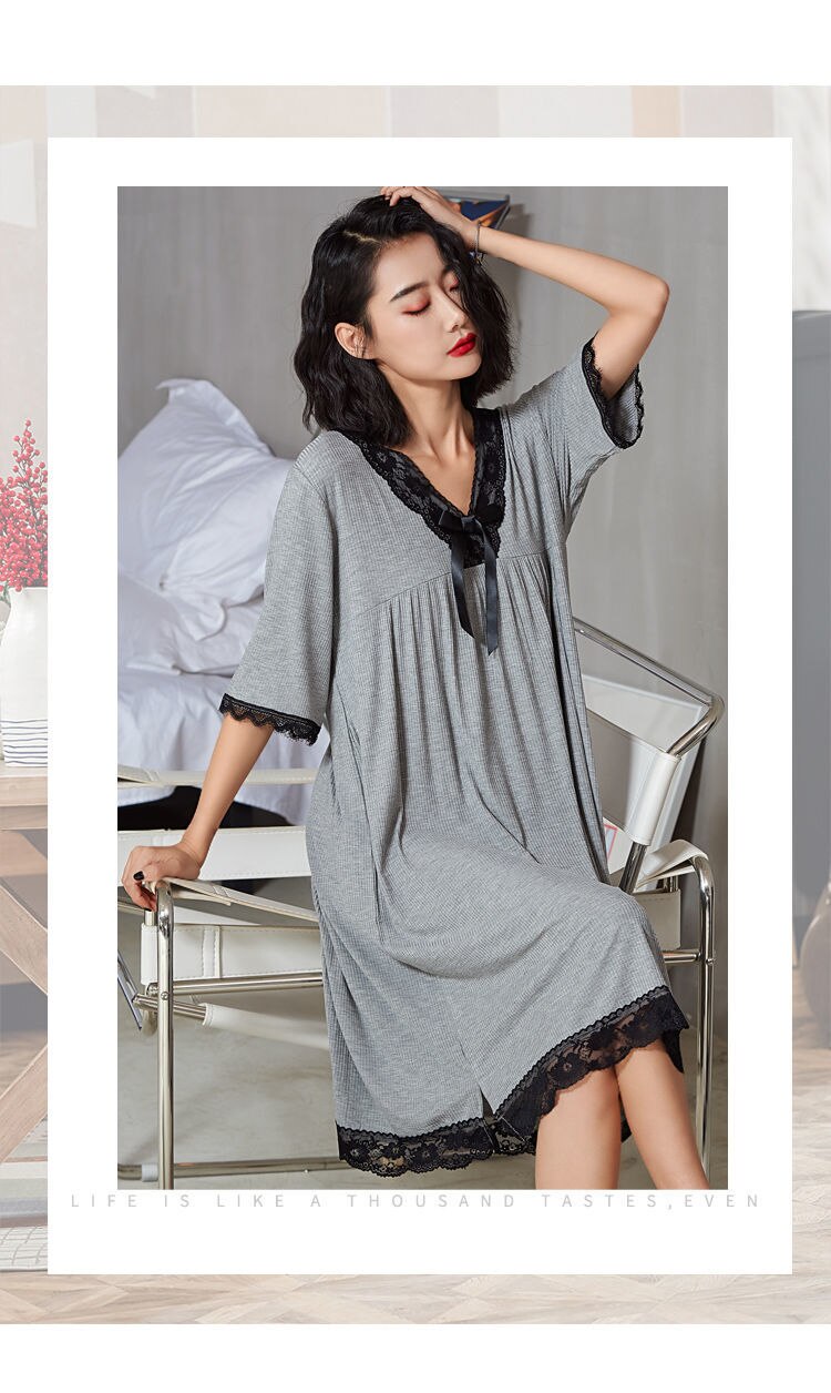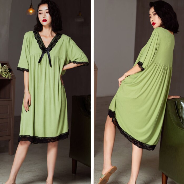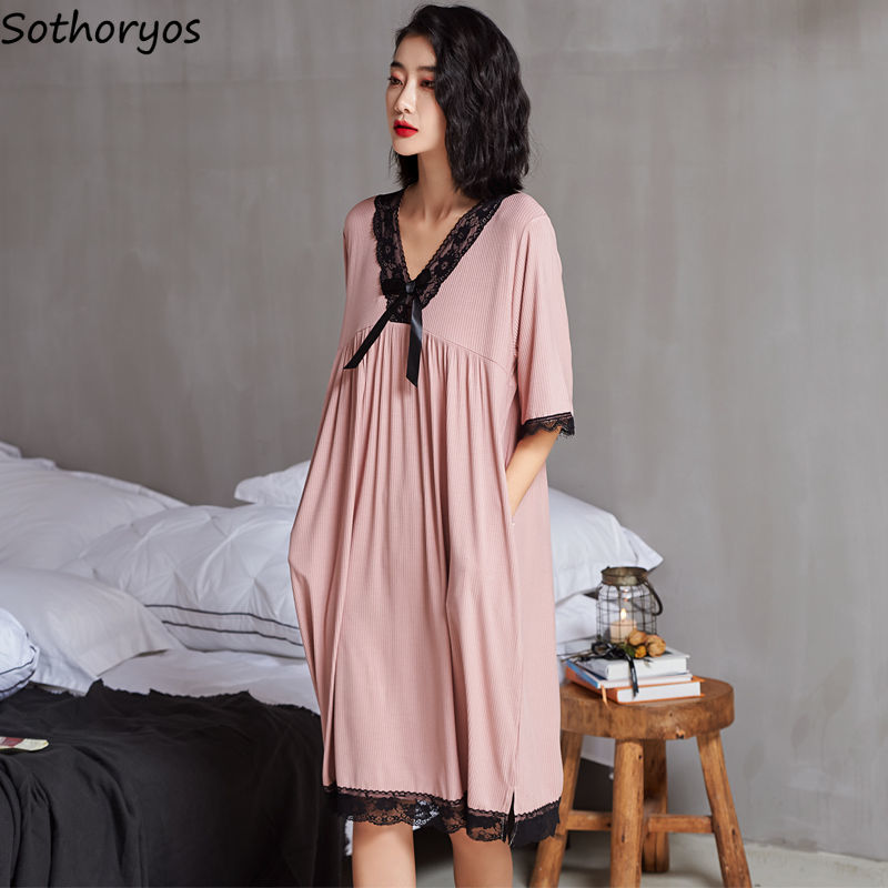Patchwork Lace V-neck Women Nightgowns Knee-length Sexy Elegant Thin Half Sleeve Loose Summer Homewear Fashion Chic Soft Leisure